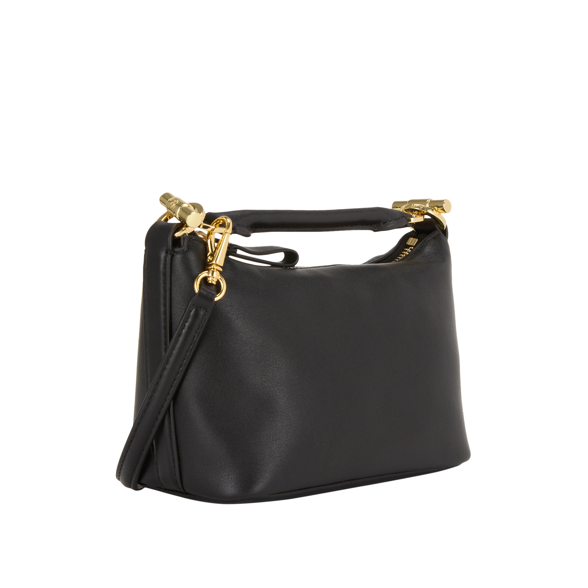- Detachable top handle, top zip fastening, detachable and adjustable crossbody strap, embossed logo detail, engraved gold-tone hardware, smooth leather finish