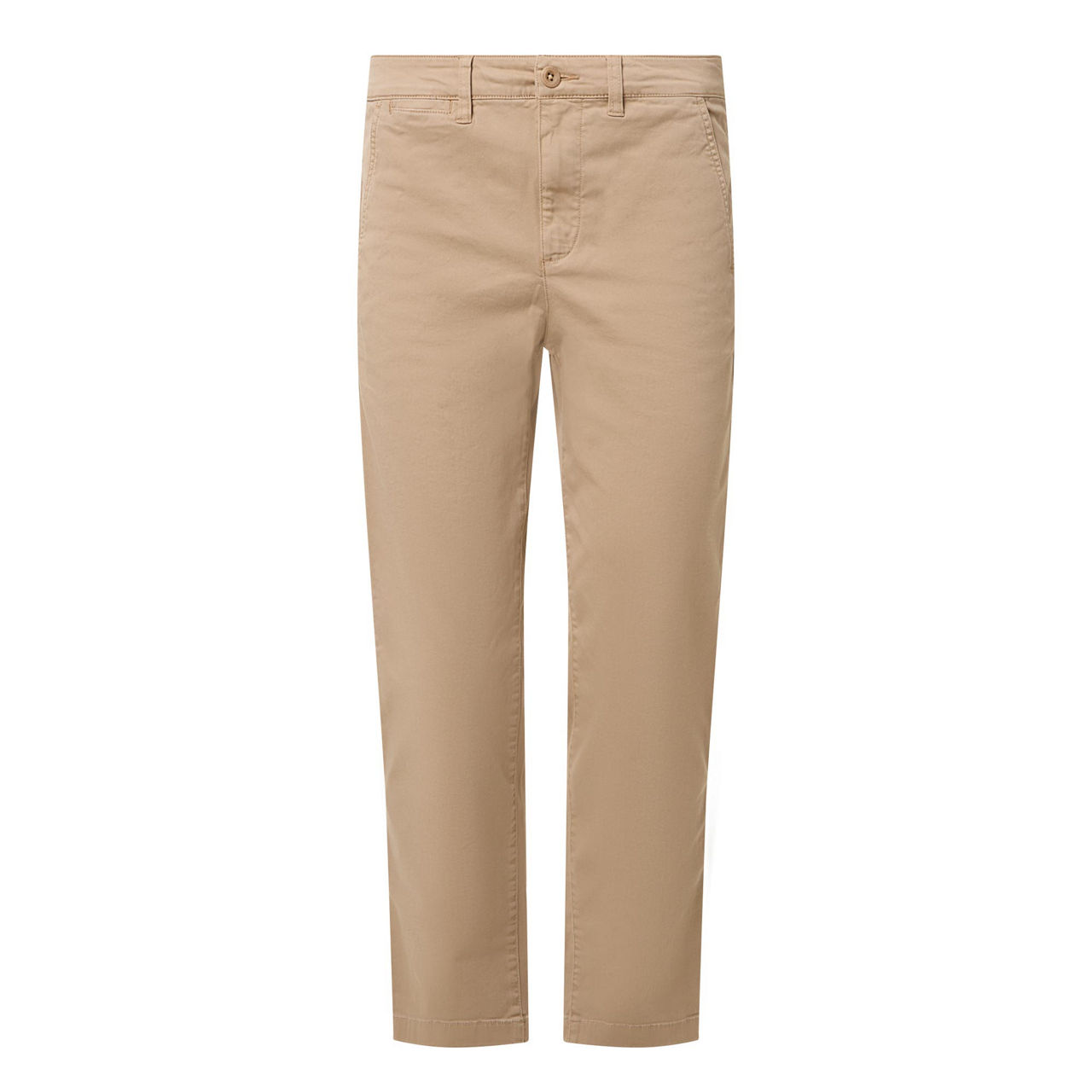- Mid-rise, slim-fit, tapered-leg, slightly cropped length, belt loops, zip fly with button fastening, two front slit pockets, left welt coin pocket, two rear welt pockets, clean hems