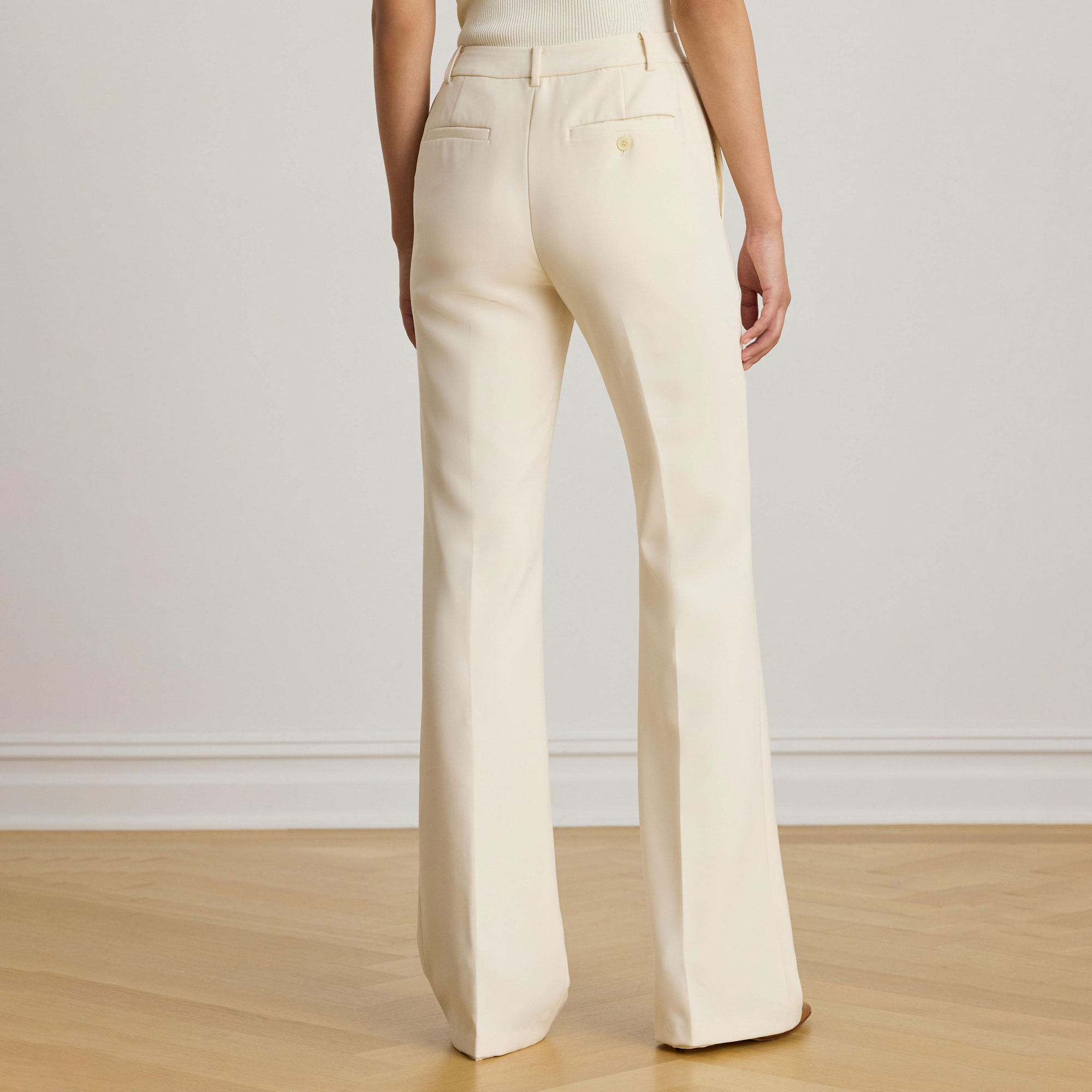 - Straight-leg silhouette, two front waist angled pockets, back left waist welt pocket, back right waist buttoned welt pocket, back waist darts, creases run down the front and back of each leg, fully lined