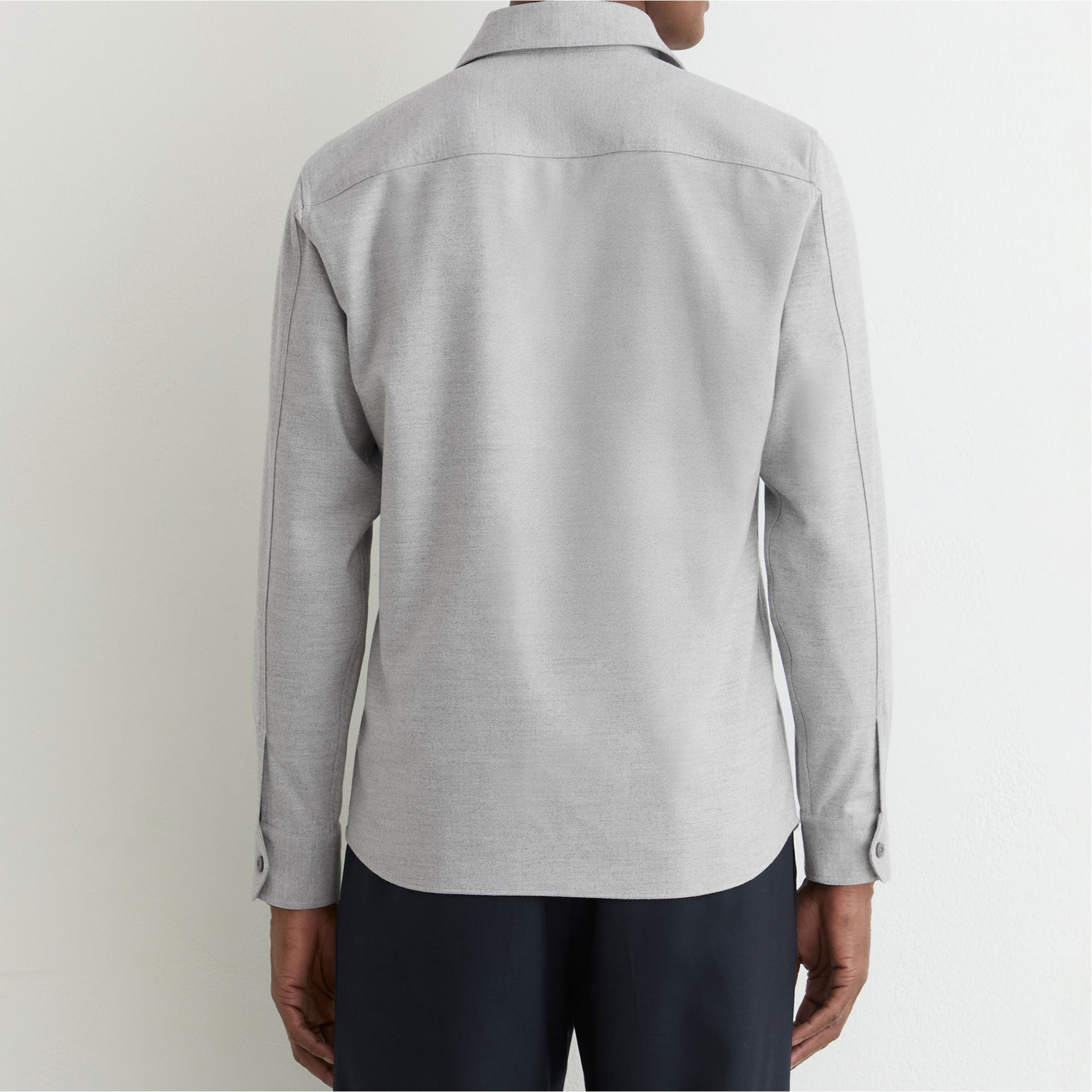 - Brushed finish, twin flap pockets, soft feel, spread collar, buttoned cuffs, front button placket, long sleeves