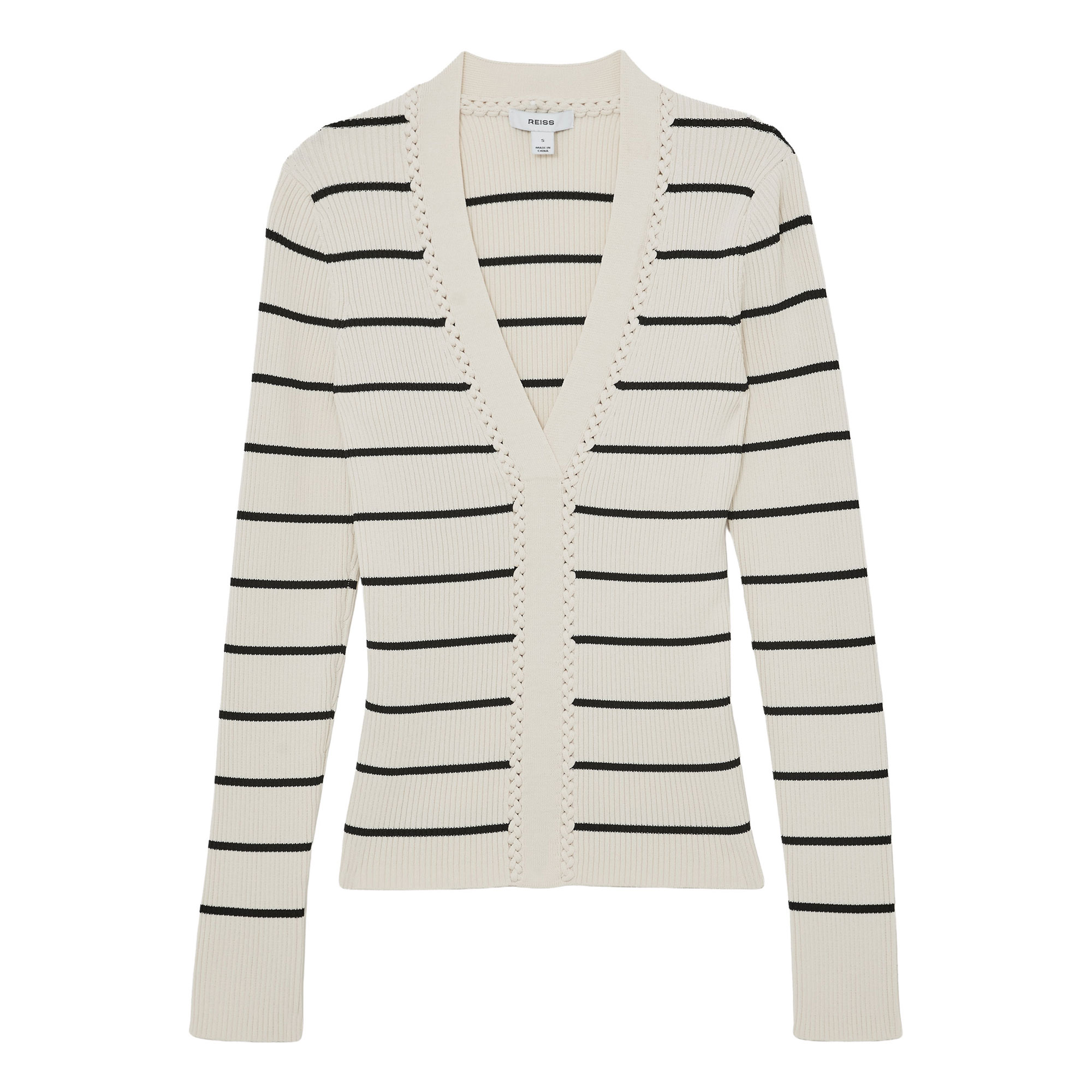REISS Lauralee Stripe Rib-Knit Top