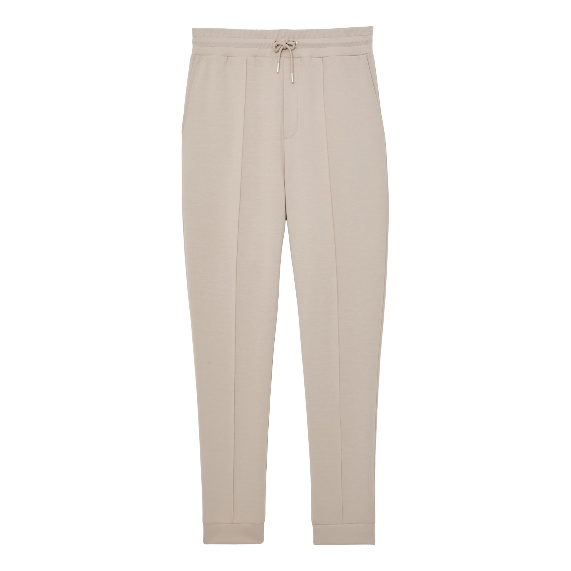 - Elasticated drawstring waist, front pintucks, side slip pockets, fitted cuffs