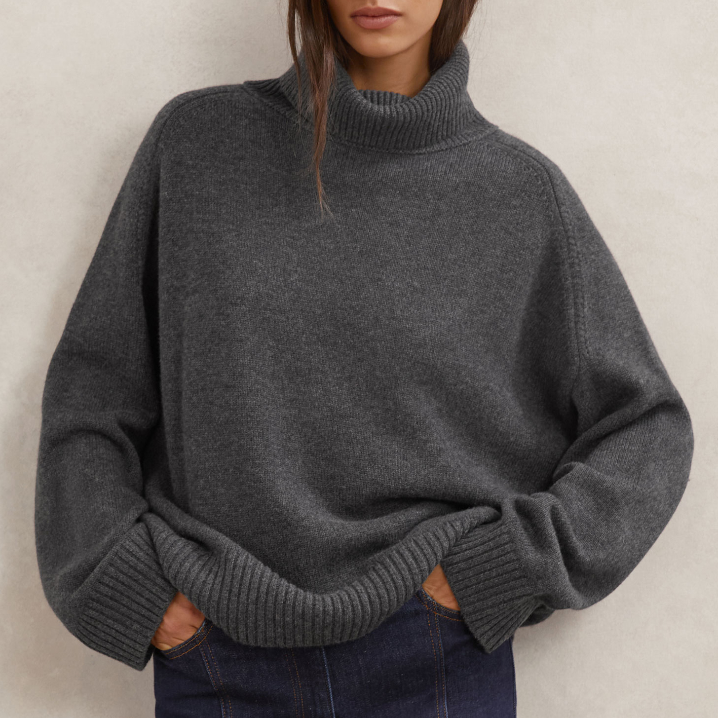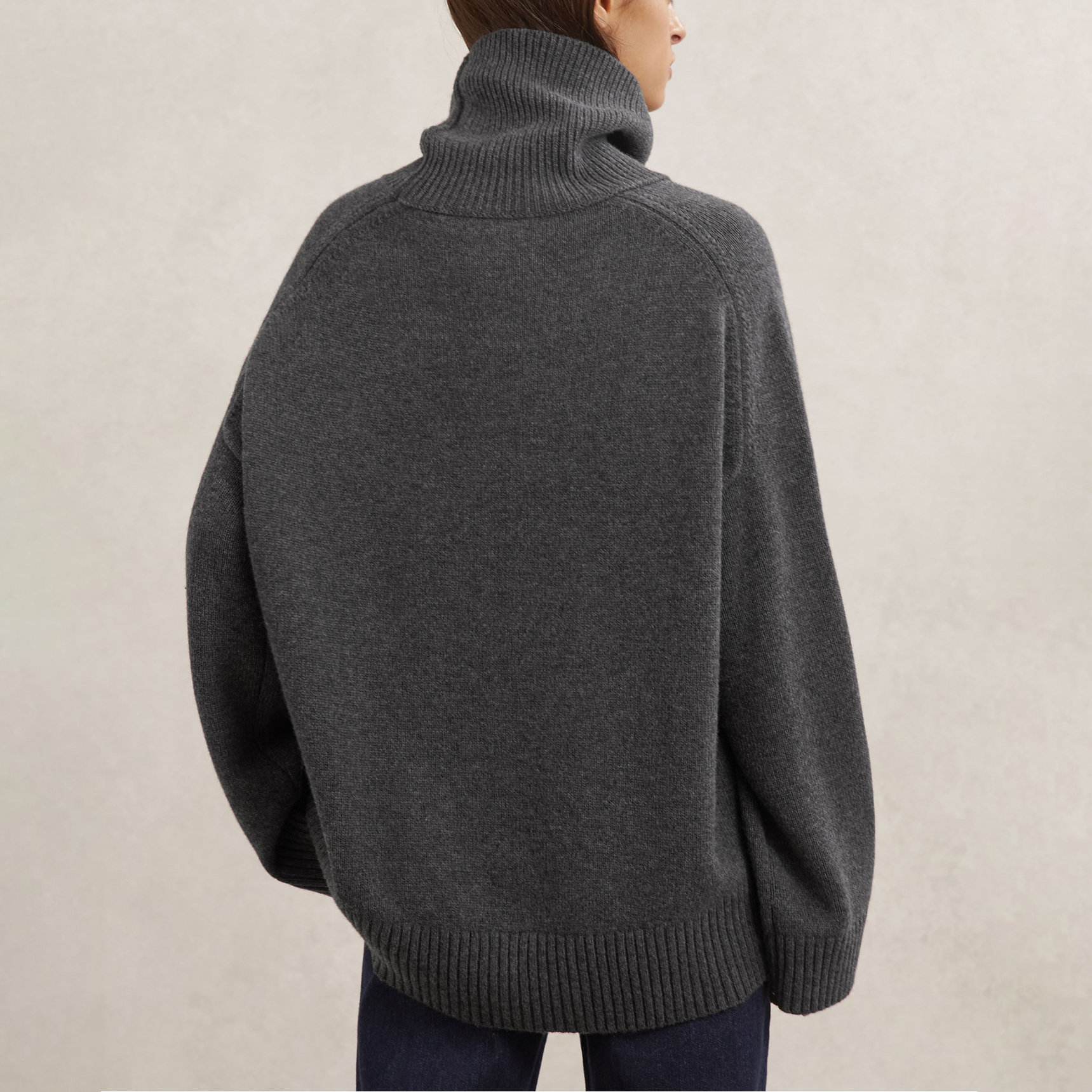 • Roll neck, raglan sleeves, ribbed trims