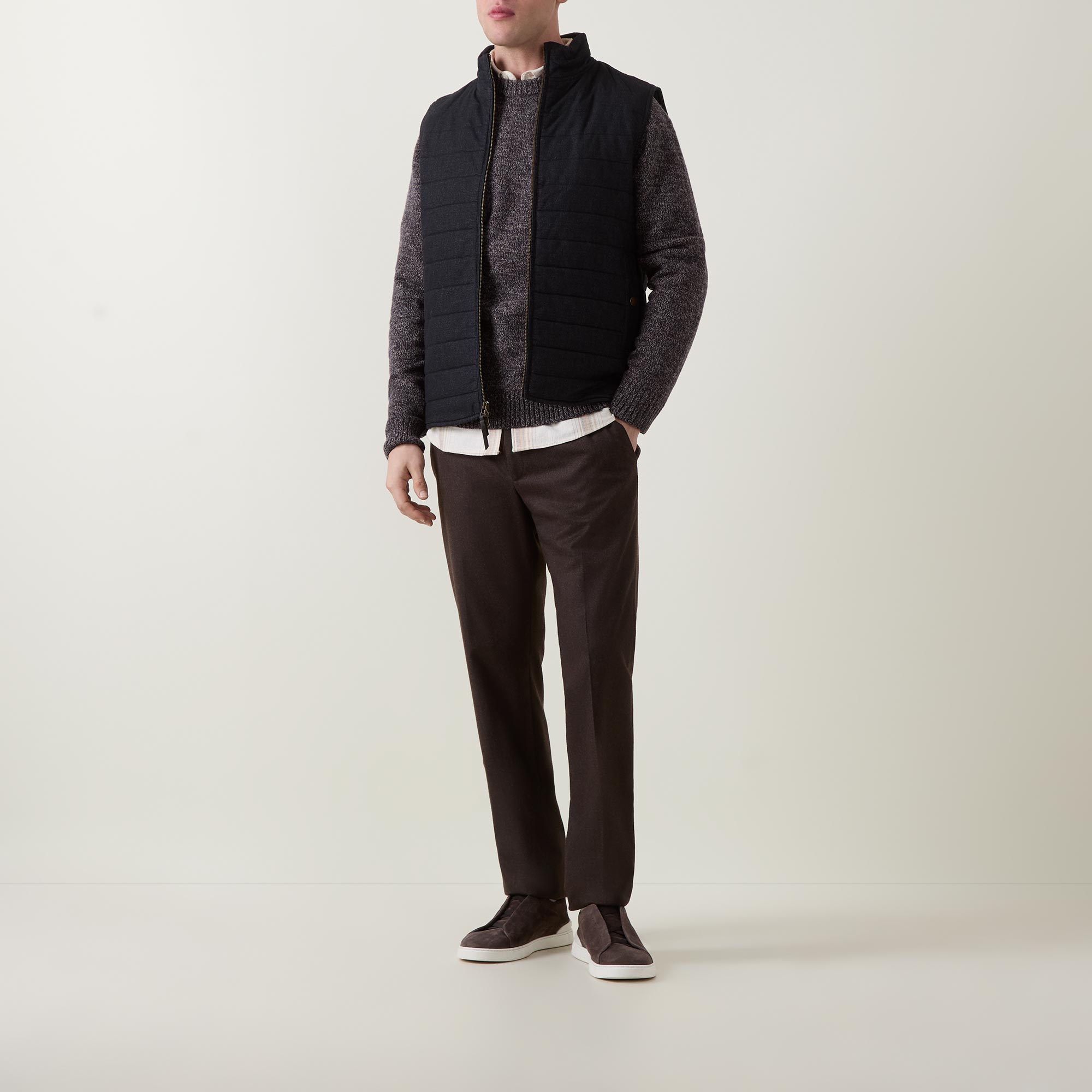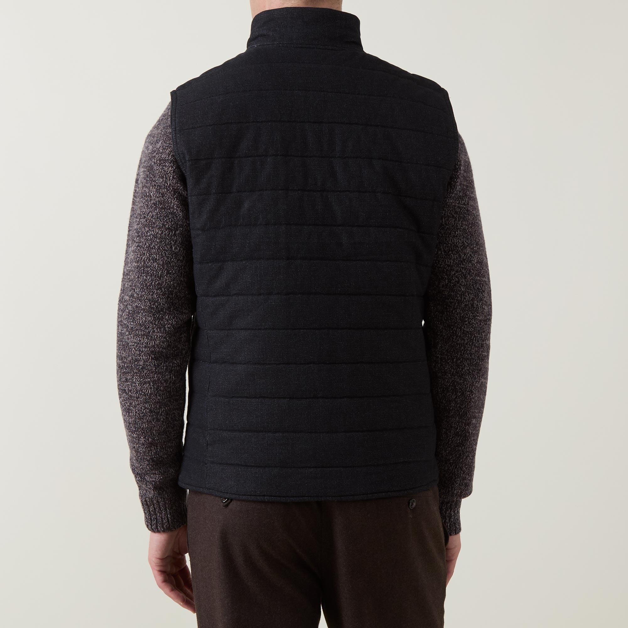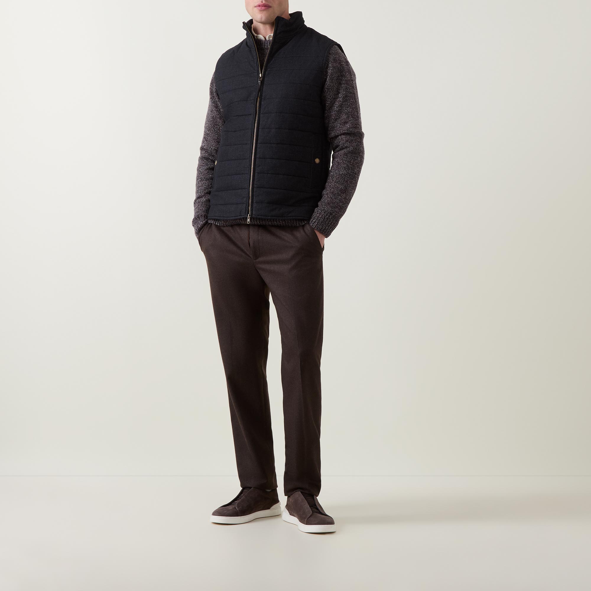 - Funnel neck, sleeveless design, two-way front zip fastening, two side pockets with snap button fastenings, straight hem, padded, soft finish