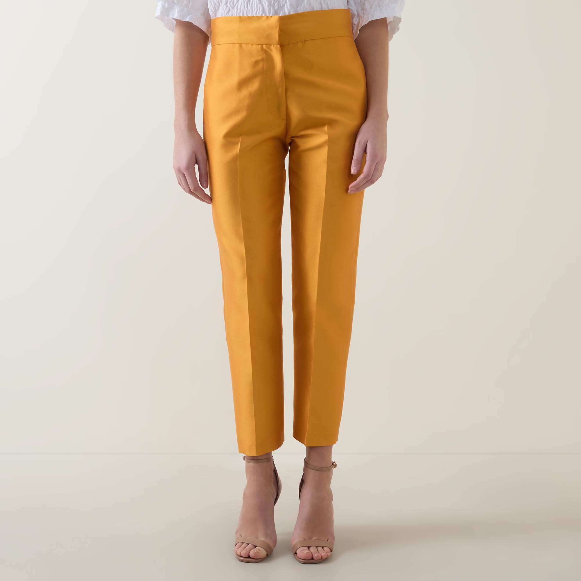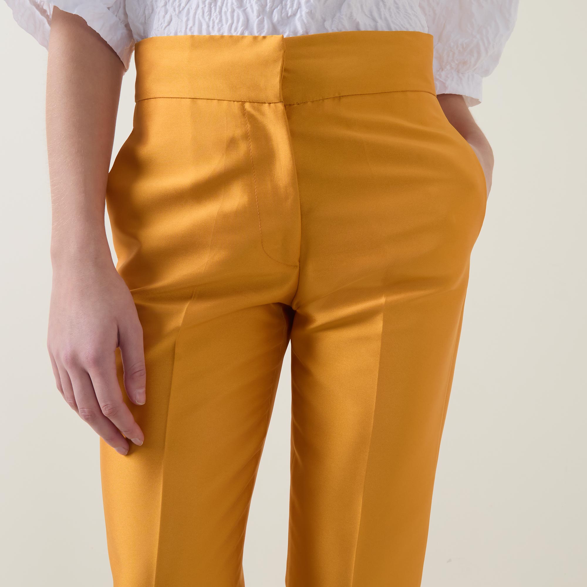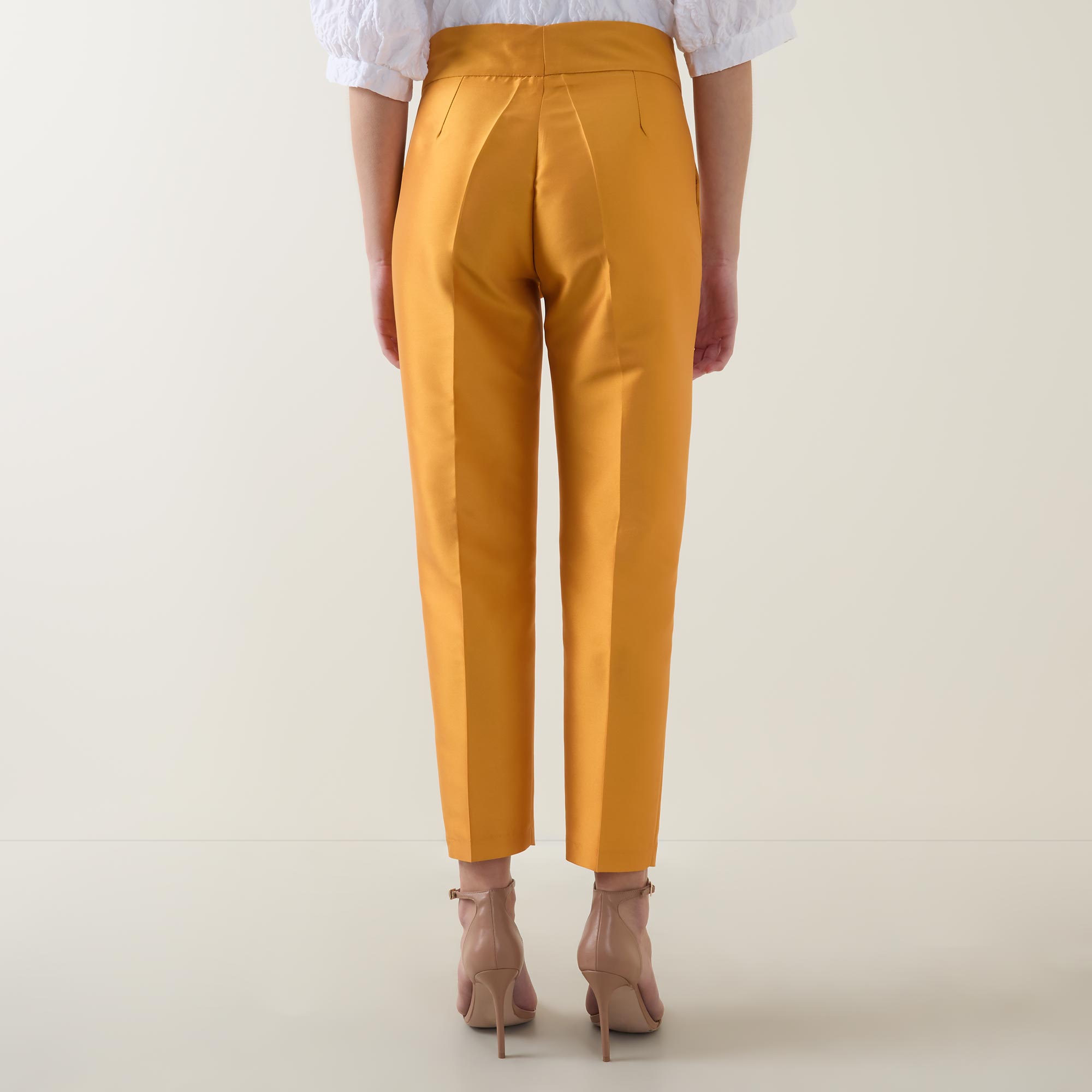 • Flat front, hook and eye with fly zip fastening, tapered cut, pressed creases, side entry pockets, darting details to the back