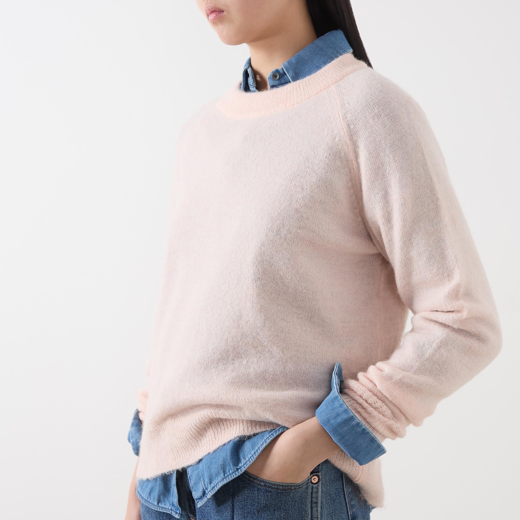- Crew neck, long sleeves, straight hem, ribbed trims, knit construction, soft finish