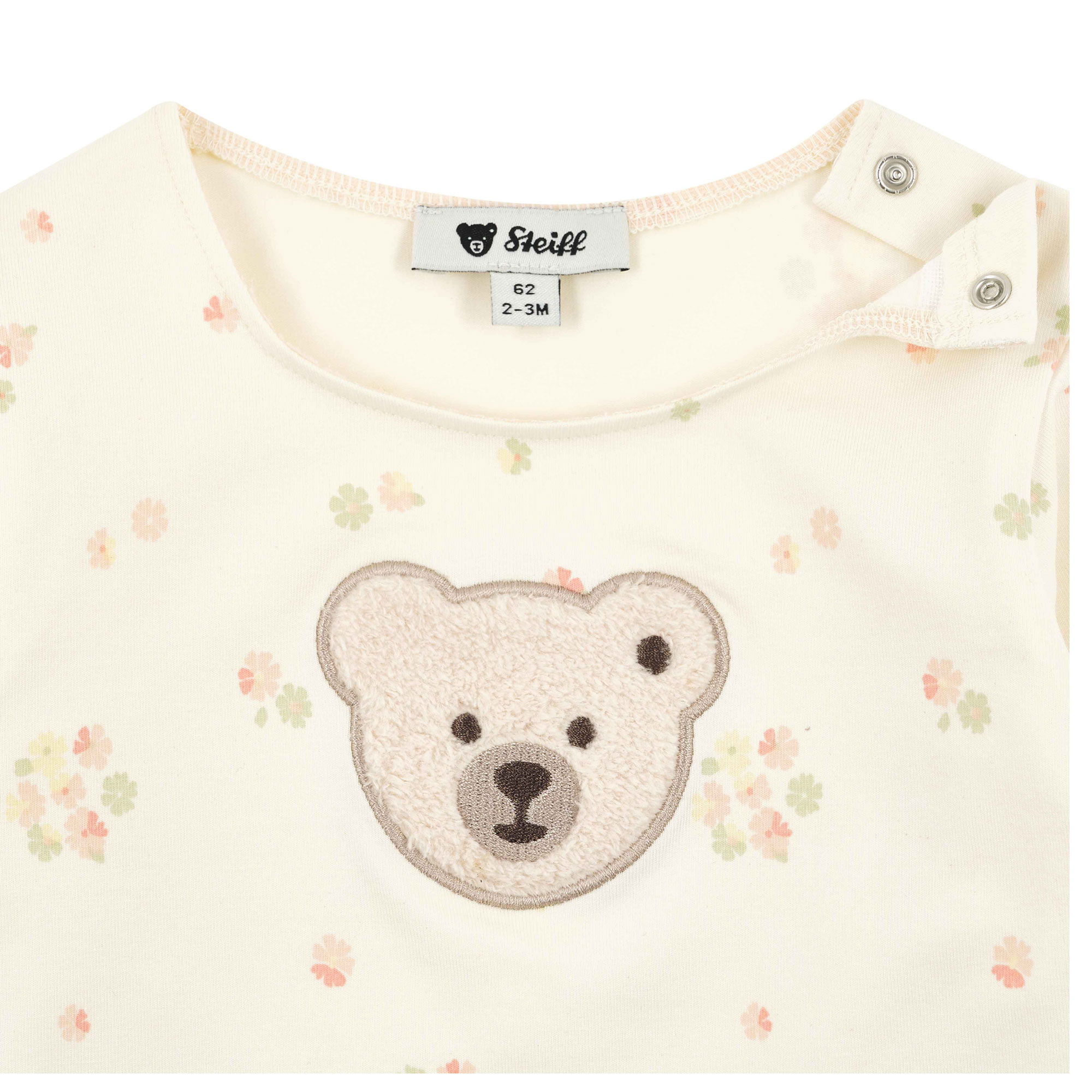 - Round neck, floral print, bear logo motif, snap fasteners, long sleeves