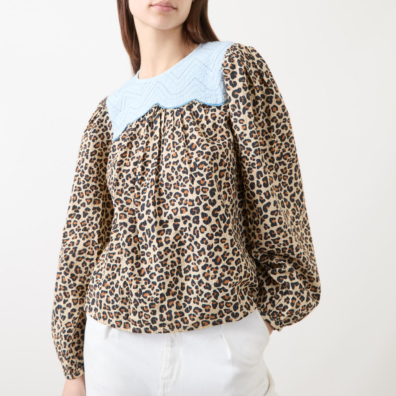 STELLA NOVA Embroidery Panelled Leopard Blouse