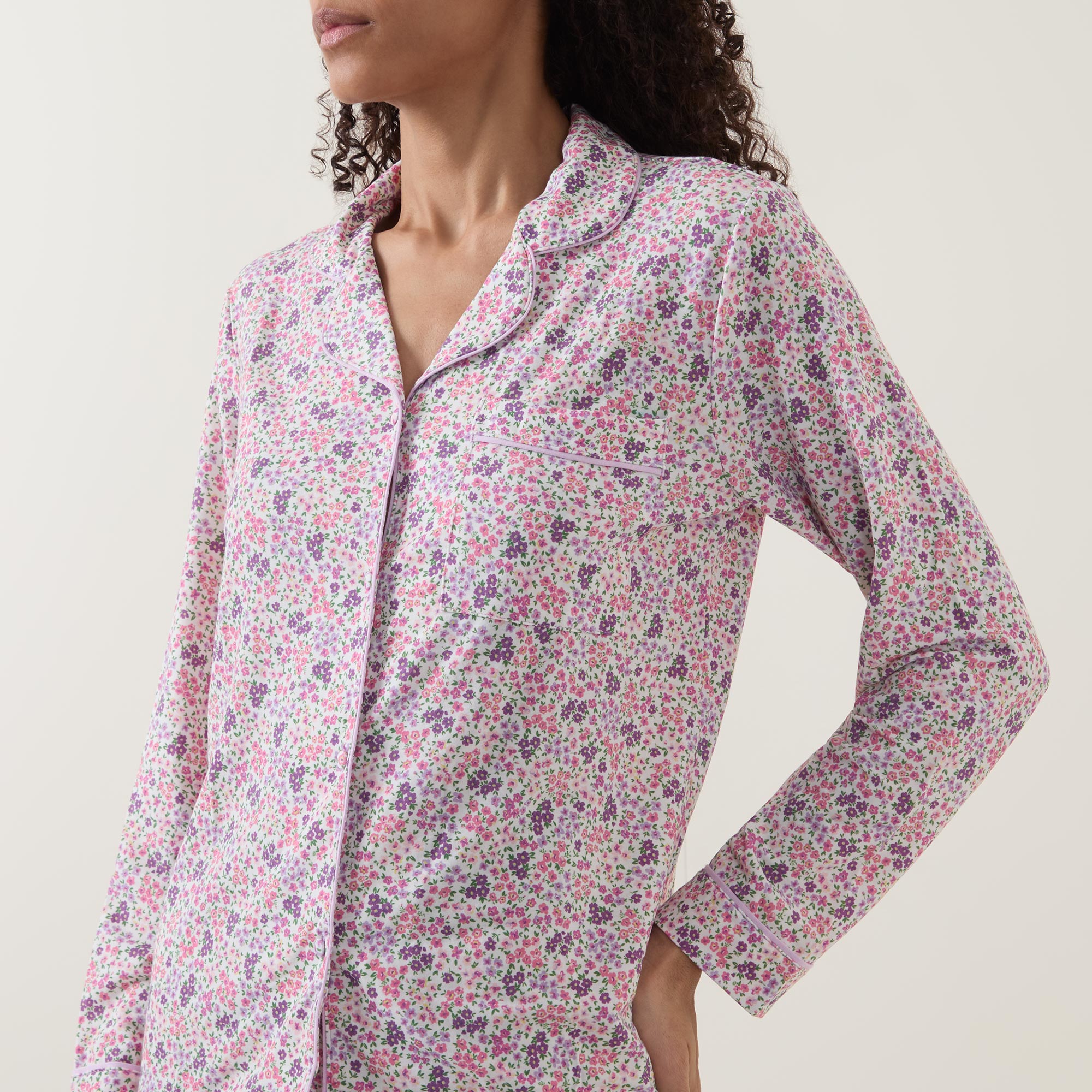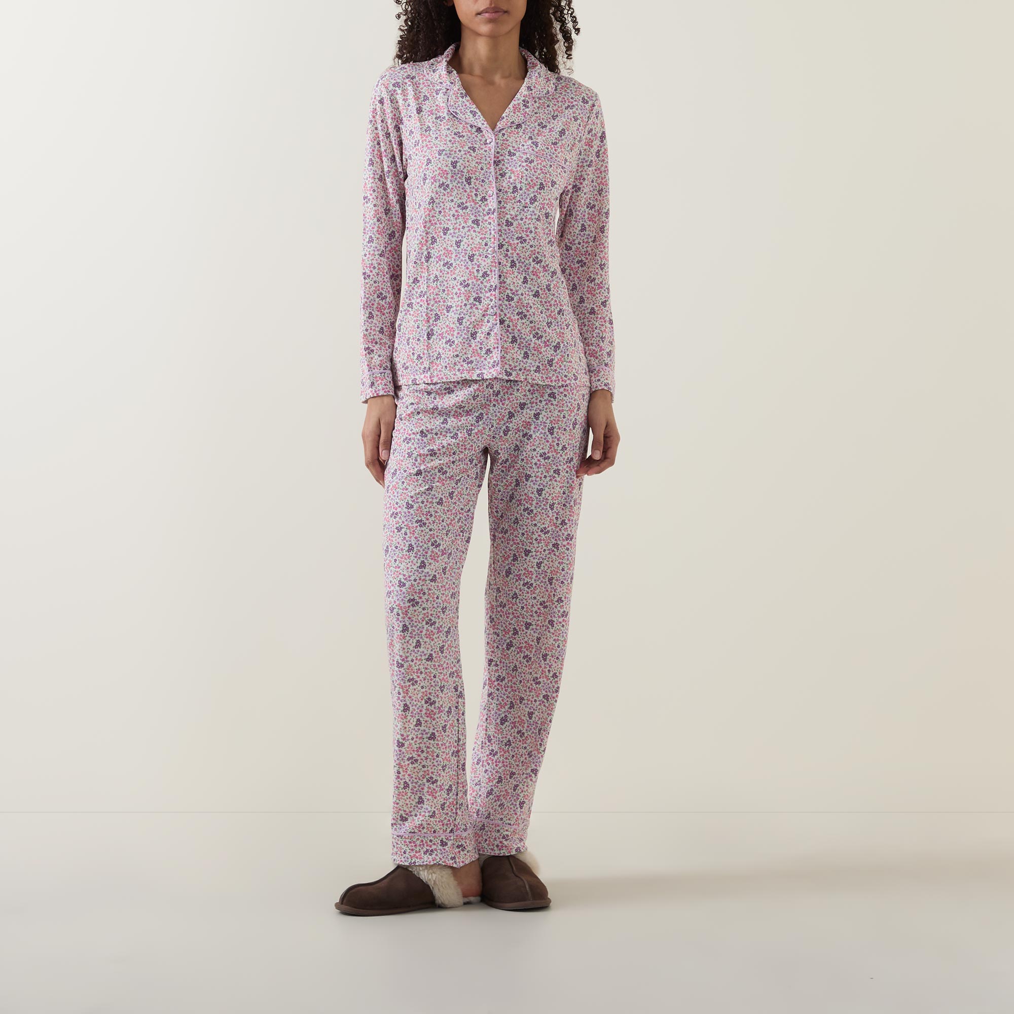 - Pyjama top: Notched neckline, button fastening, long sleeves, piped trims, floral pattern, chest patch pocket