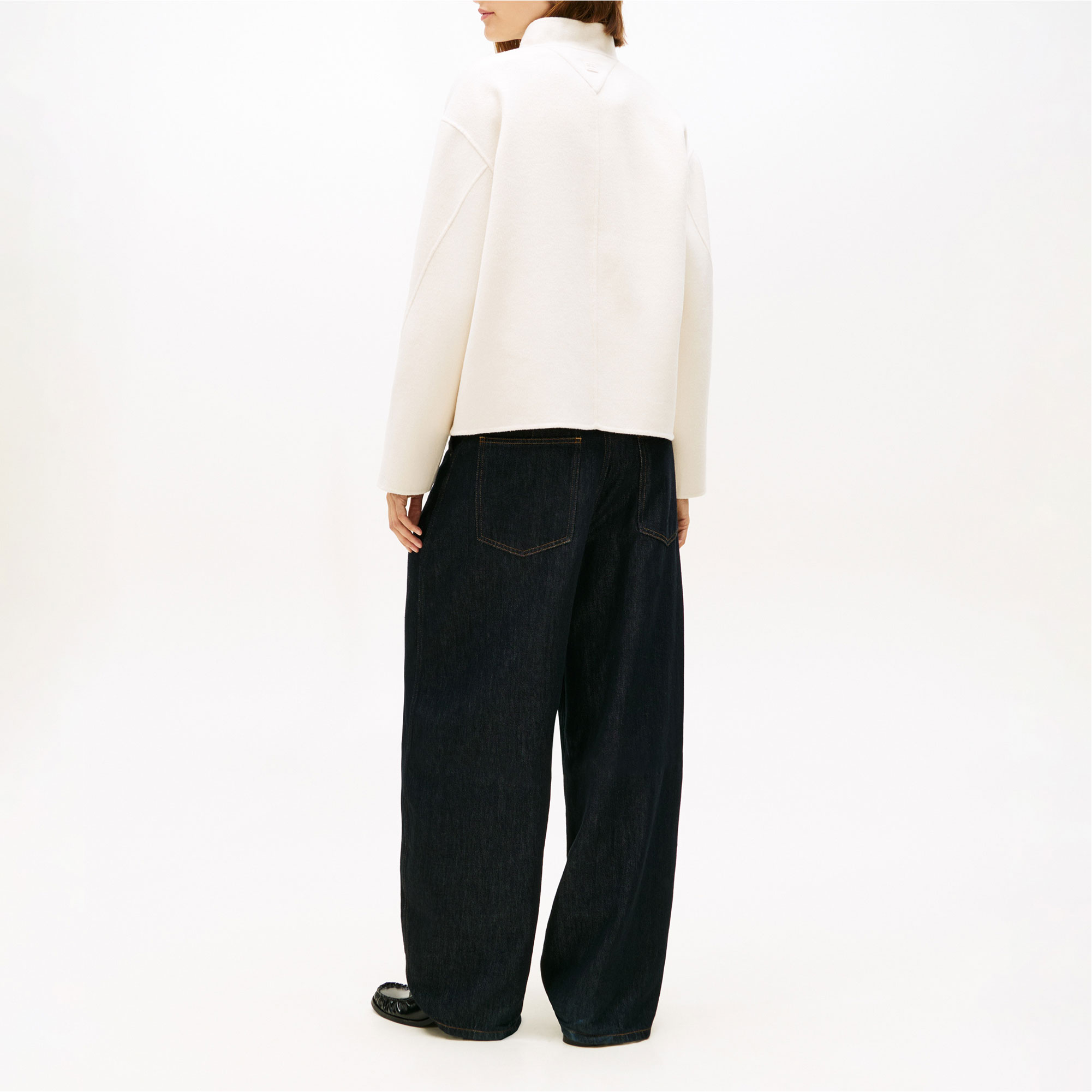 - Faux tortoiseshell buttons, button closure, two front patch pockets, signature tape inside neckline, logo detail