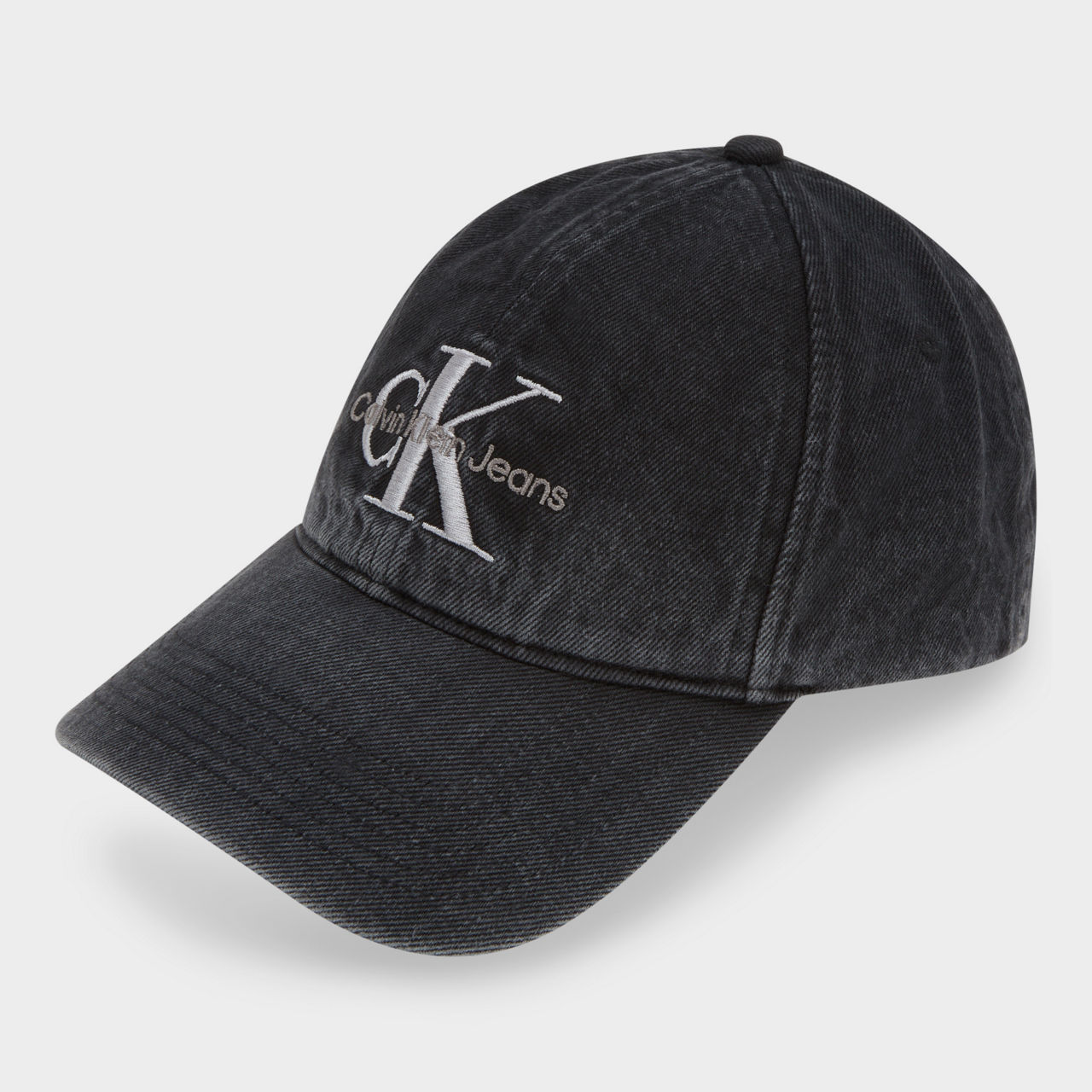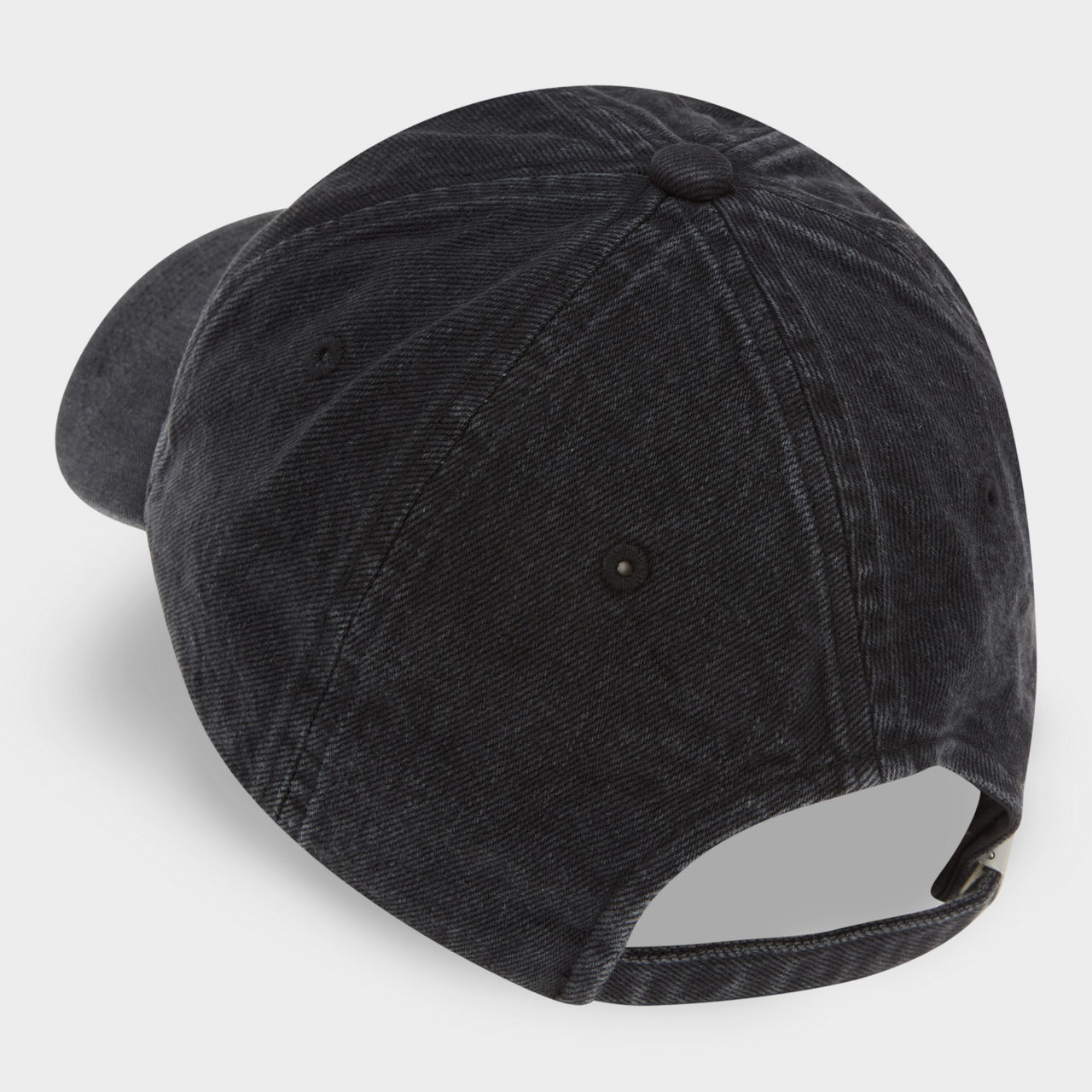 - Curved visor, six-piece style, adjustable fit, washed denim finish, eyelet details for breathability, embroidered logo to the front