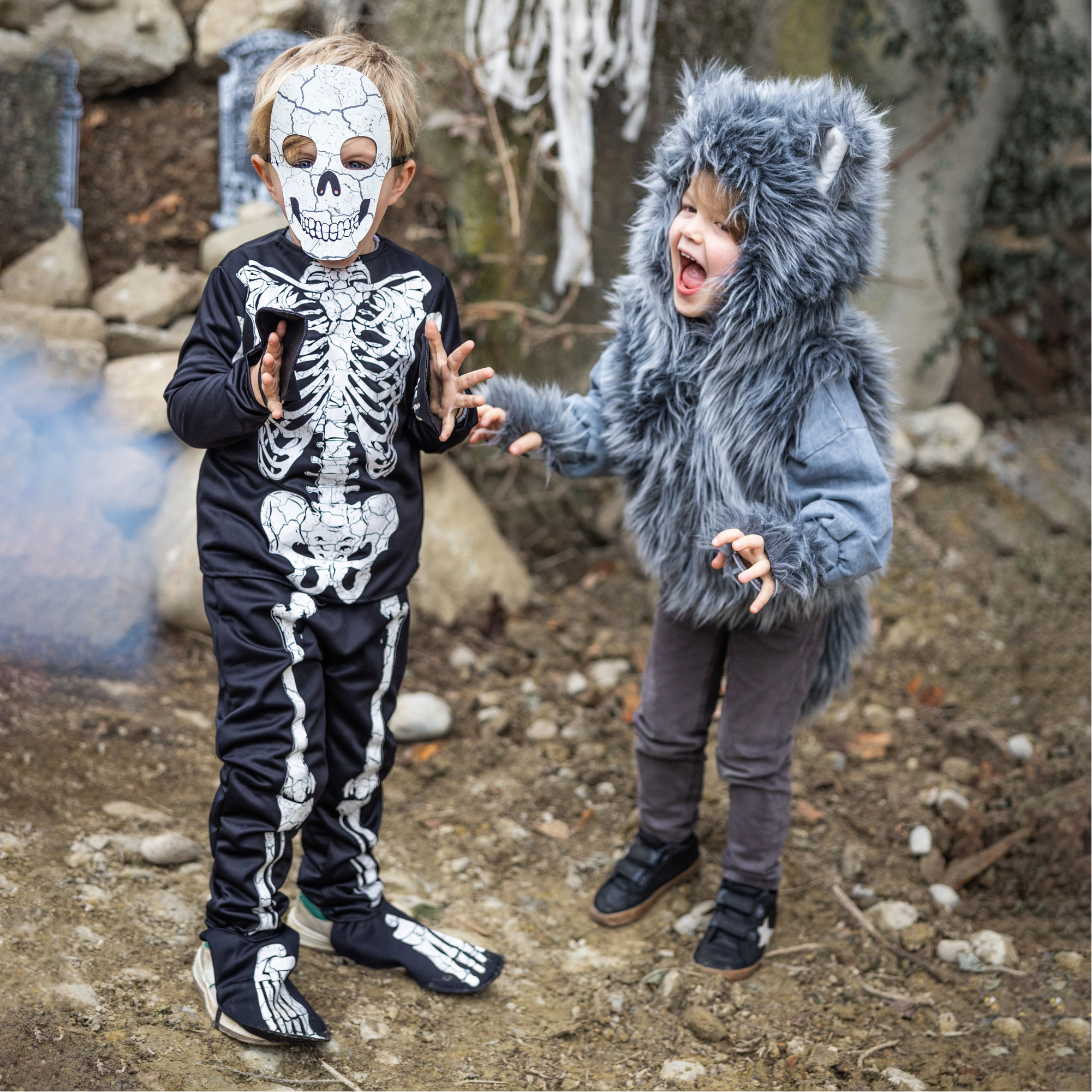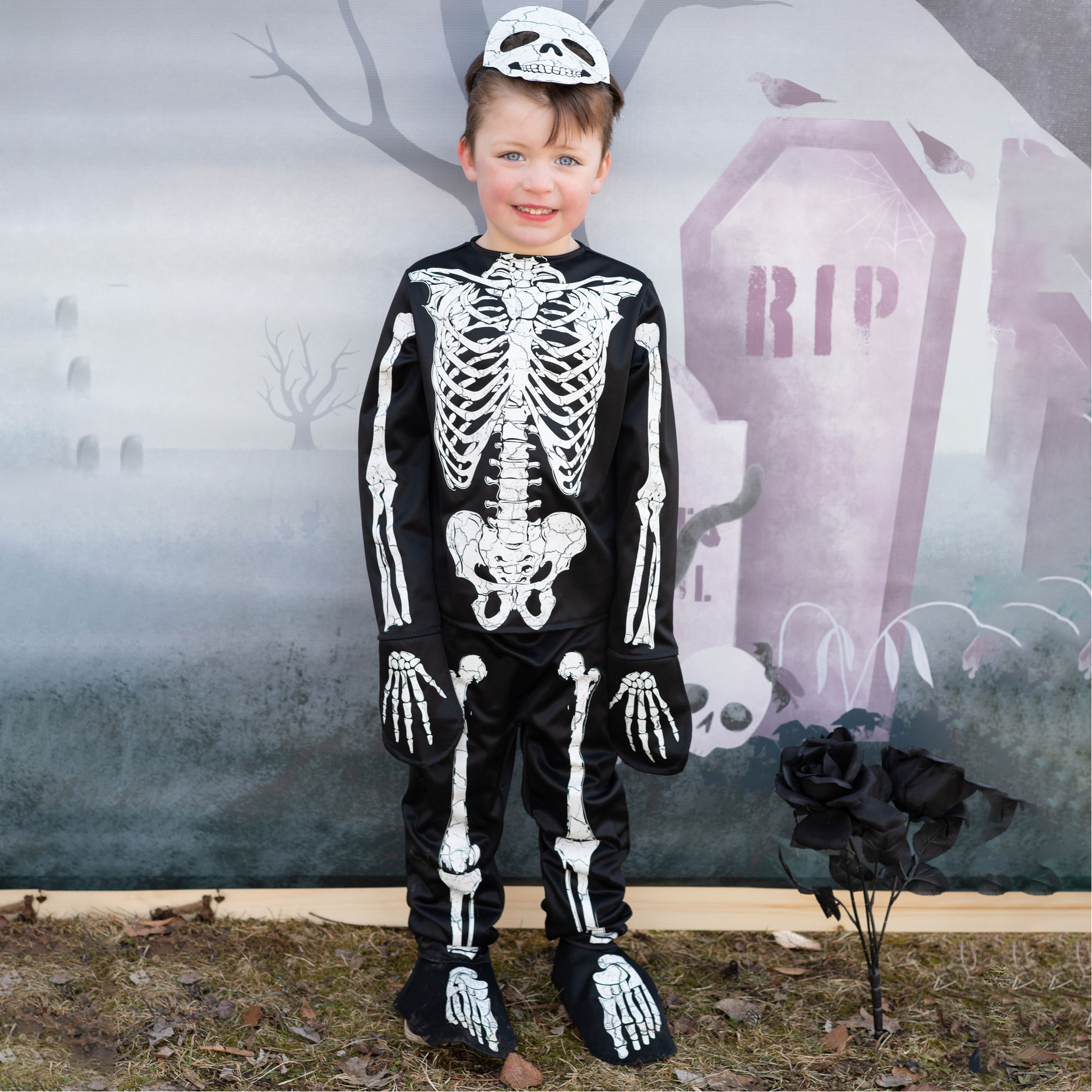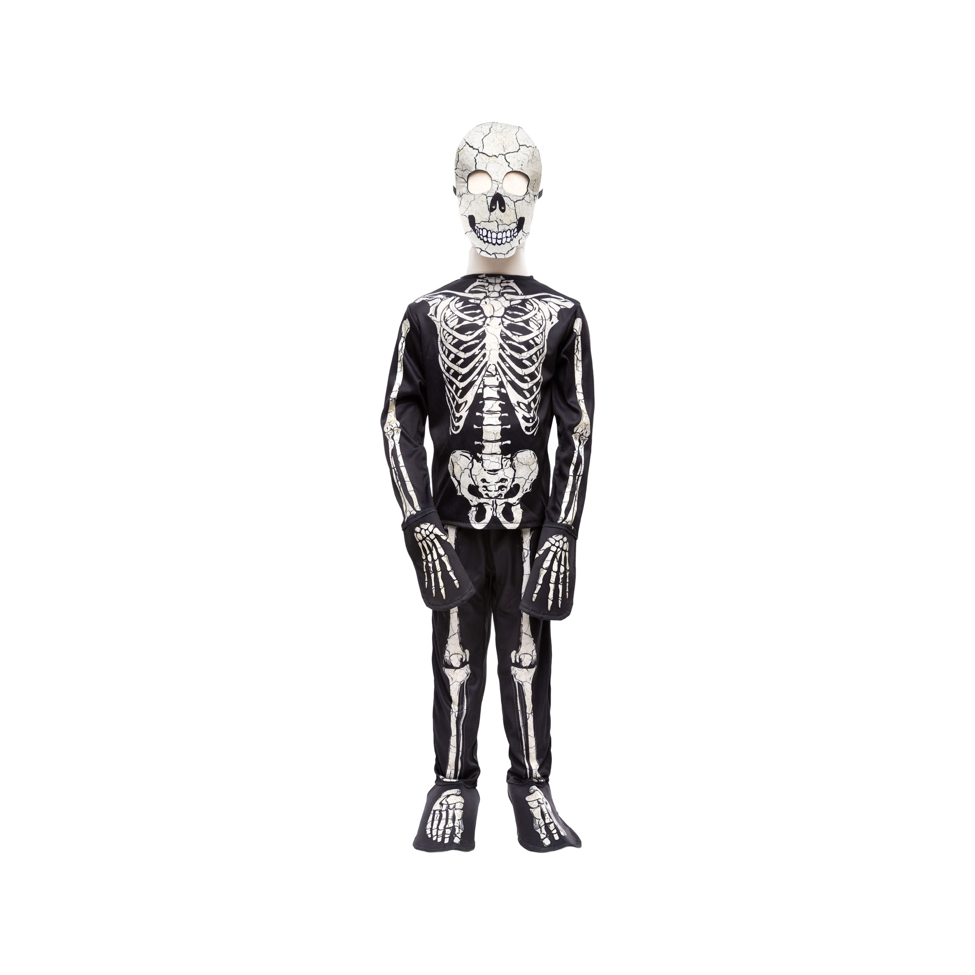 - Three-piece set, glow-in-the-dark style ink, skeleton theme, long-sleeved shirt with crew neckline, trousers with elasticated waistband, skeleton mask