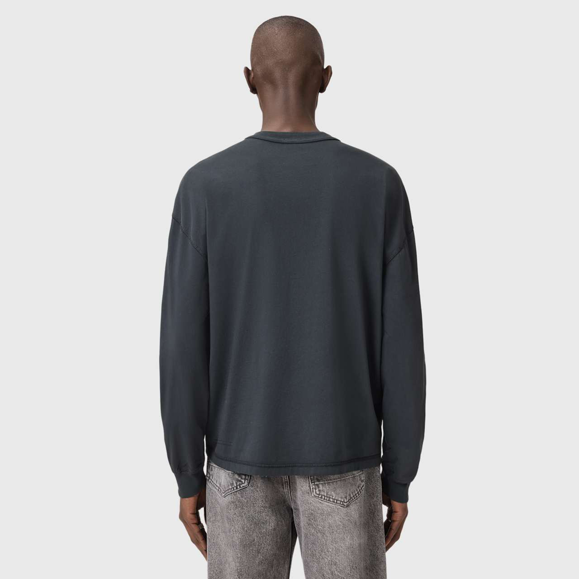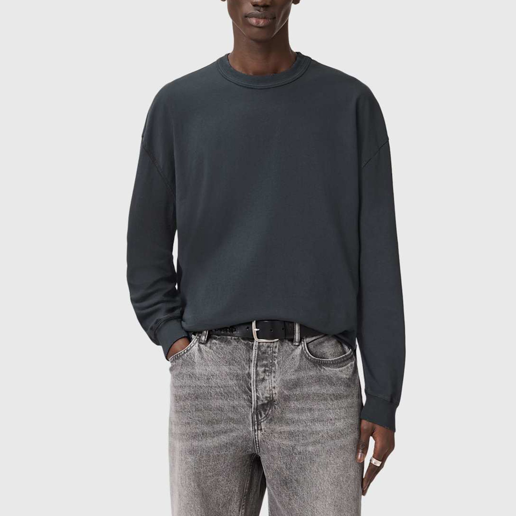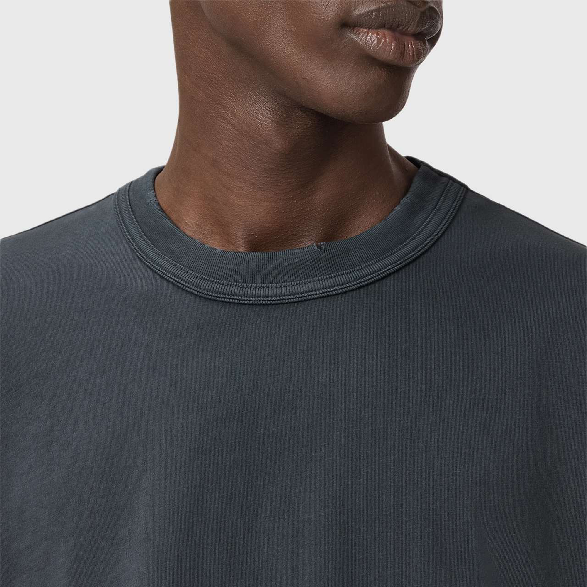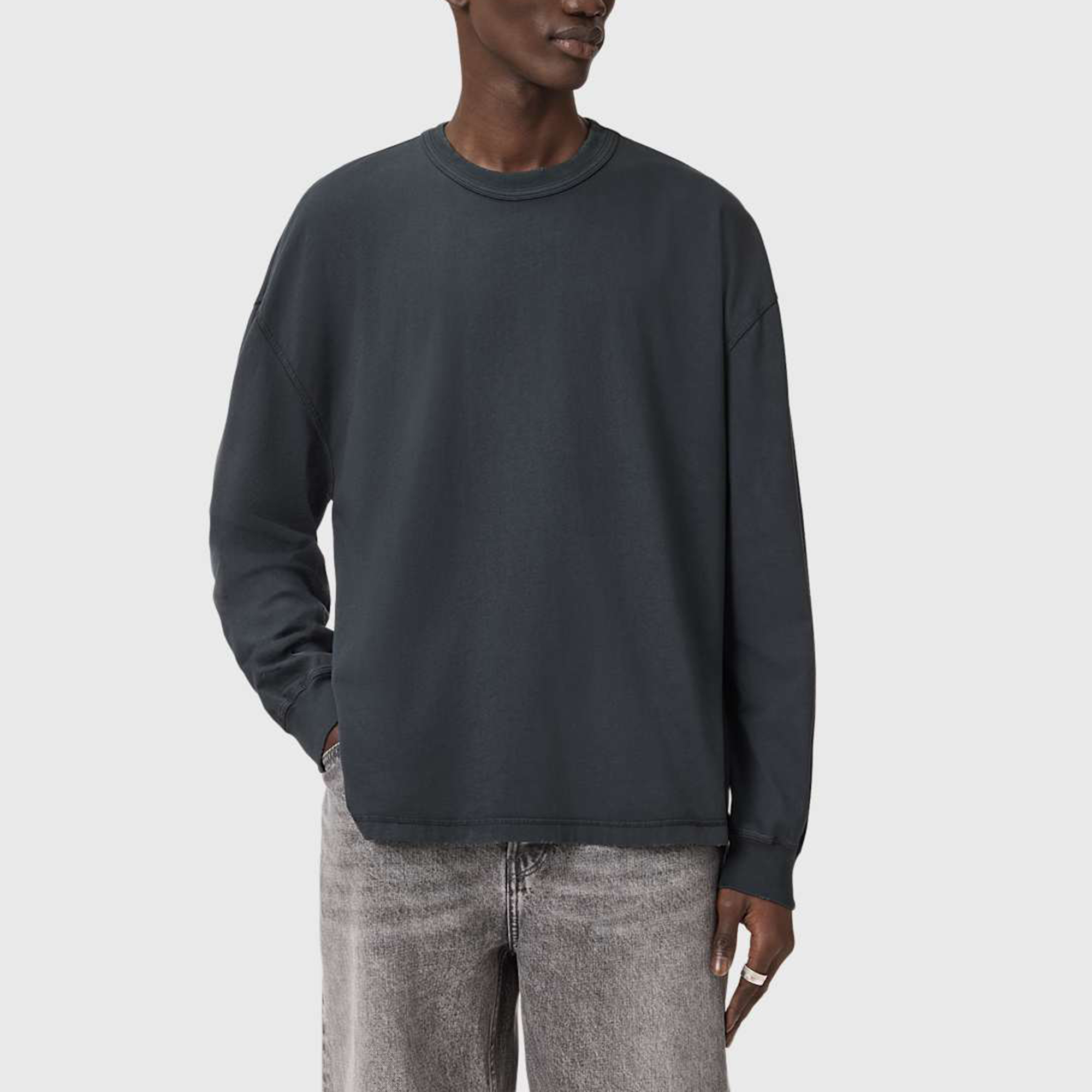 • Boxy fit, ribbed trims, flatlock stitch, grinding details, AllSaints branded flag label, all over fadeout wash