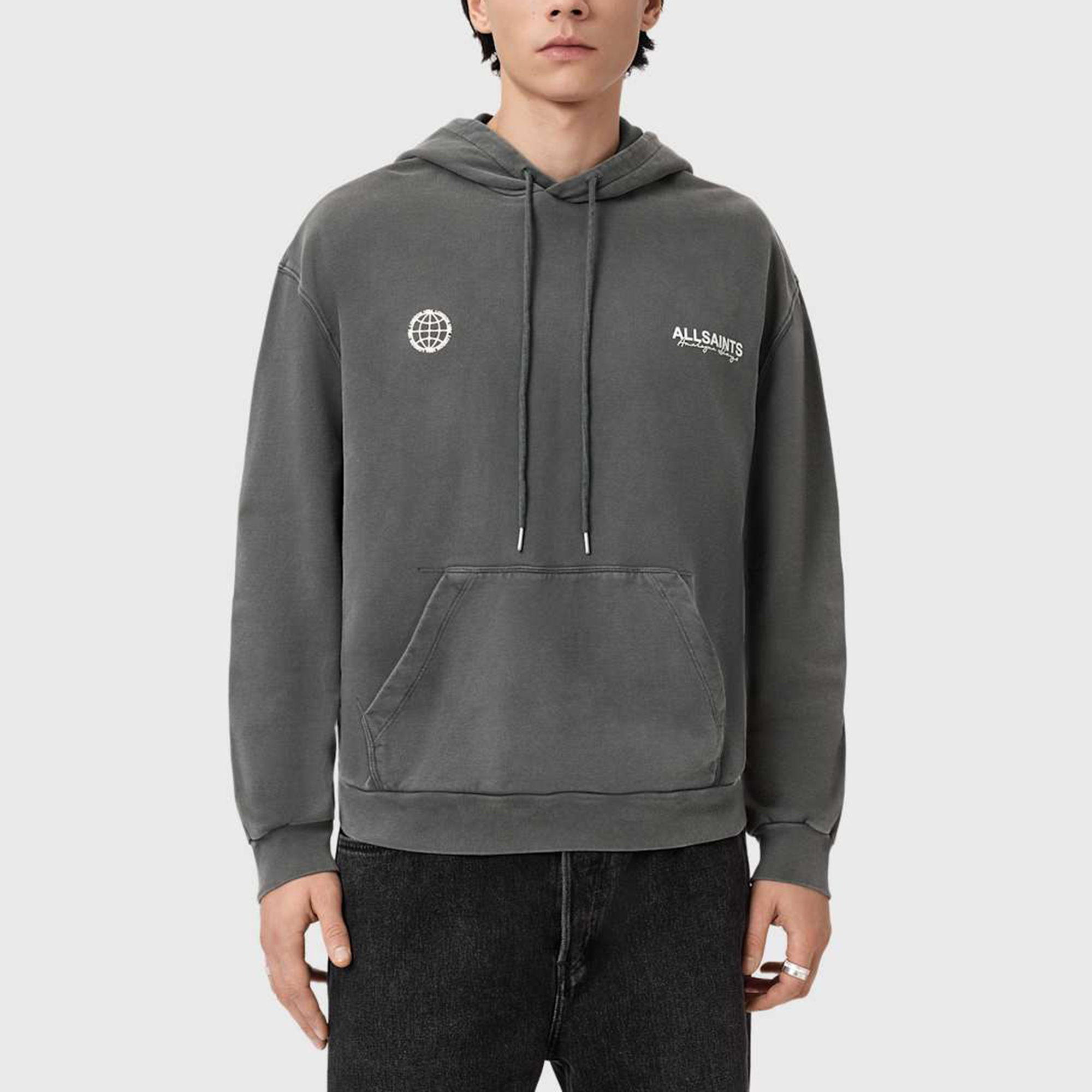 • Hood with sewn eyelets, rounded drawcord with branded metal aglets, ribbed trims, twin needle stitch to neckband, hood seam, cuffs, waistband and armholes, kangaroo pocket with twin needle to edges, logo and graphic print at chest and back