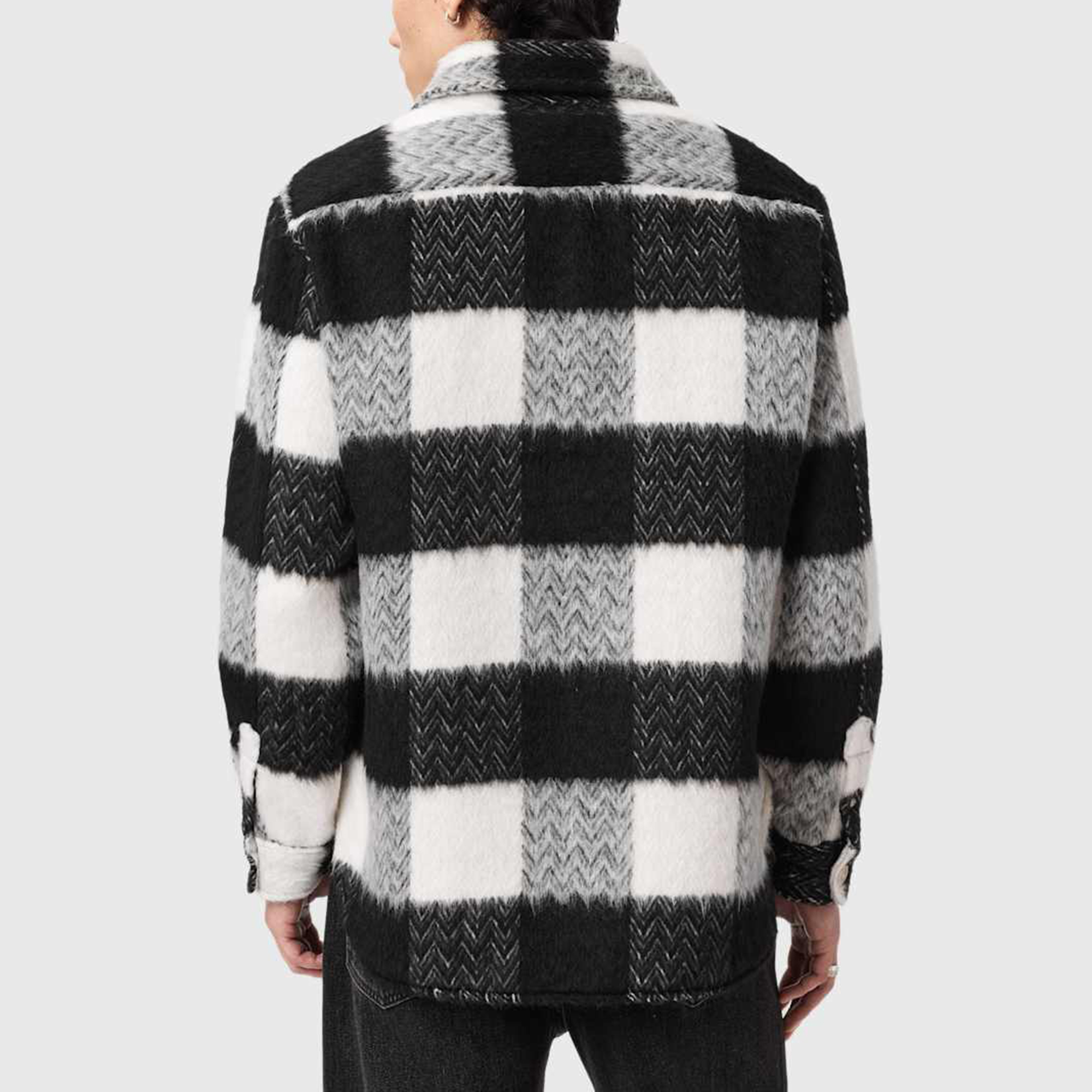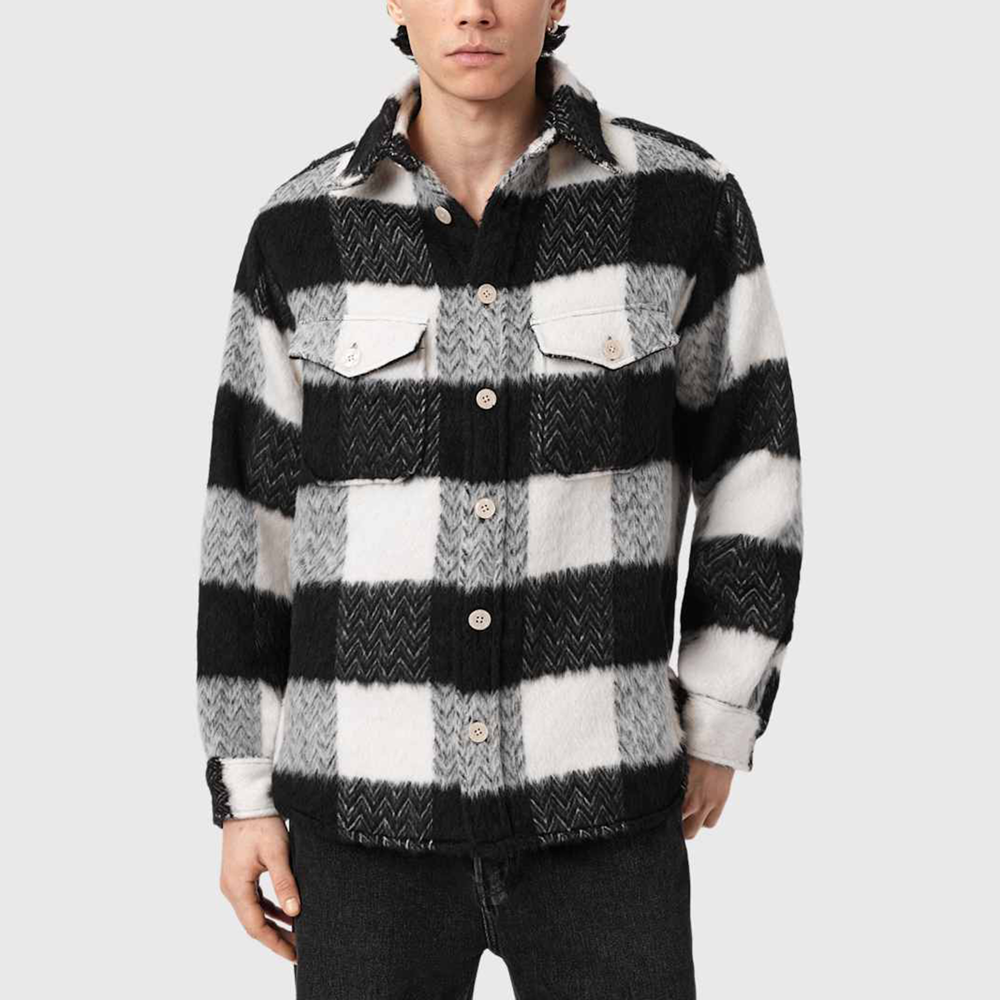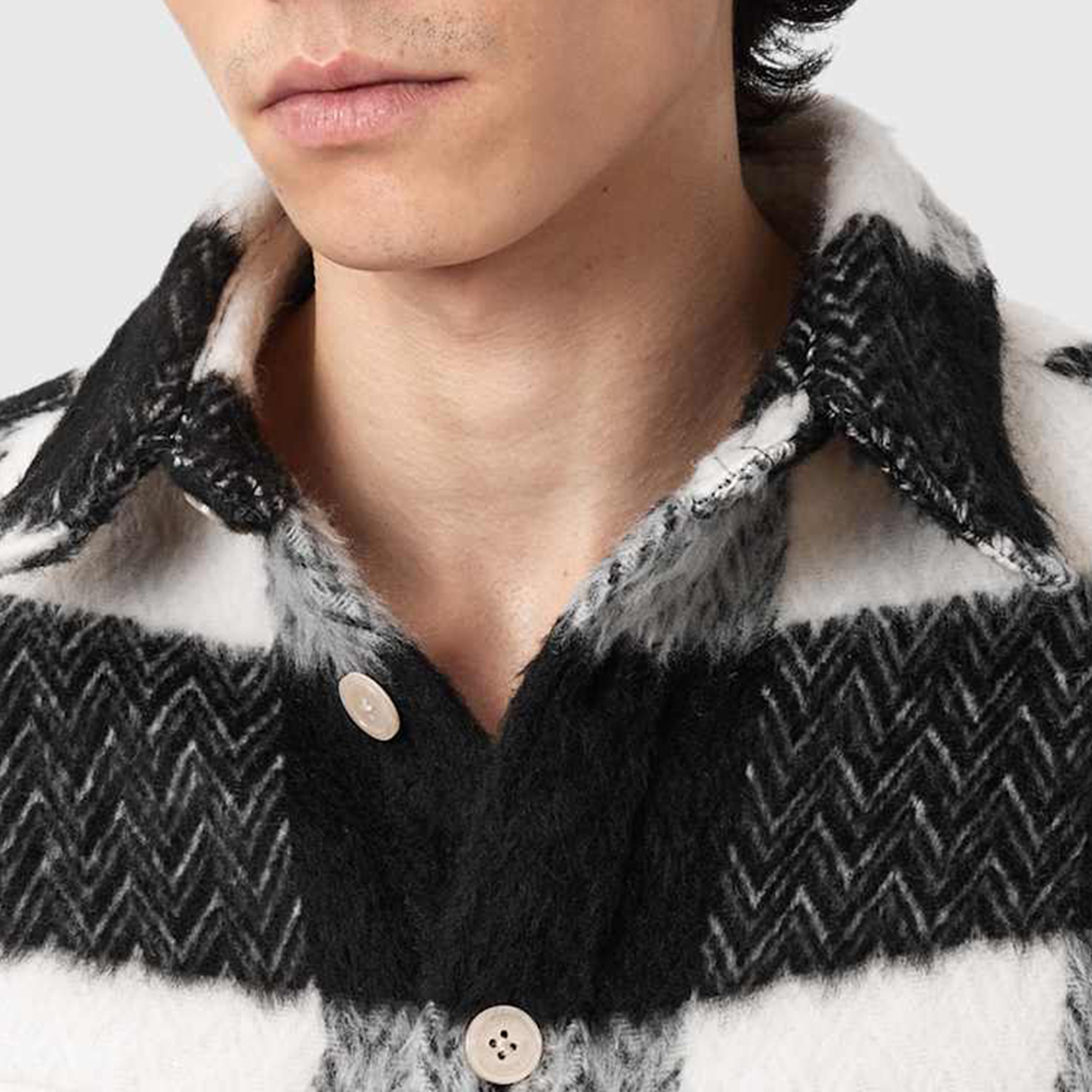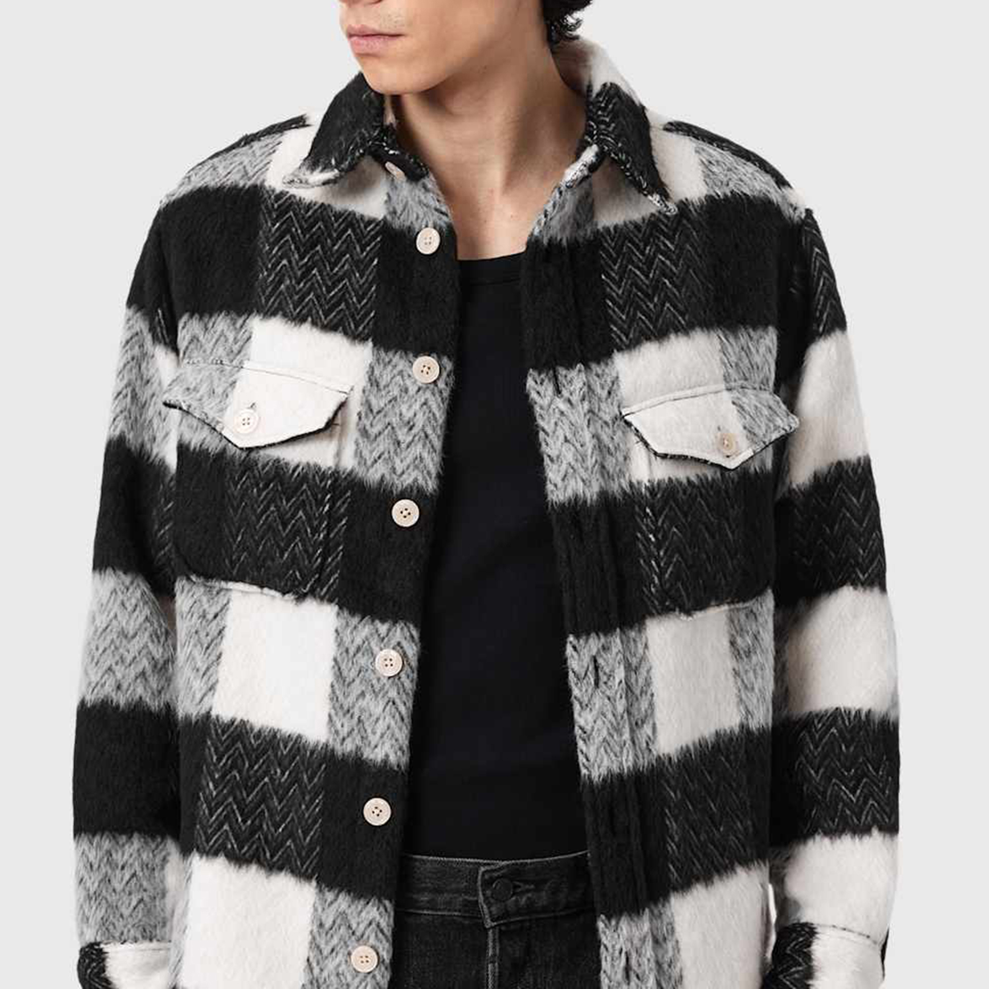 • Check pattern long sleeve, branded button fastening, check patch pockets with buttoned flap detailing, classic collar, buttoned placket cuffs