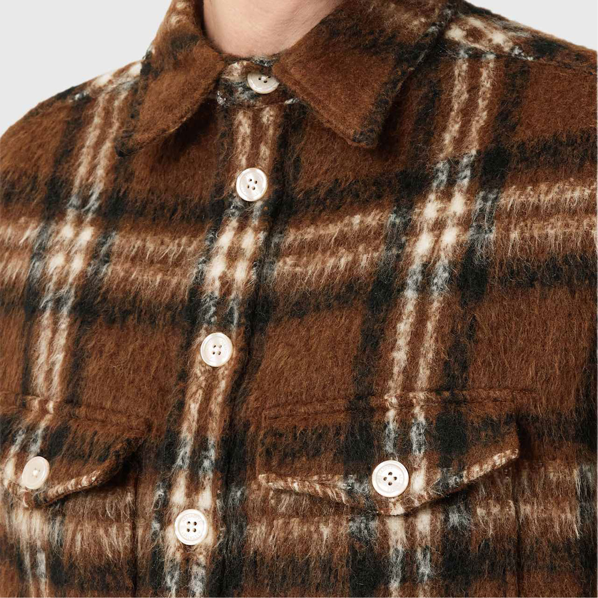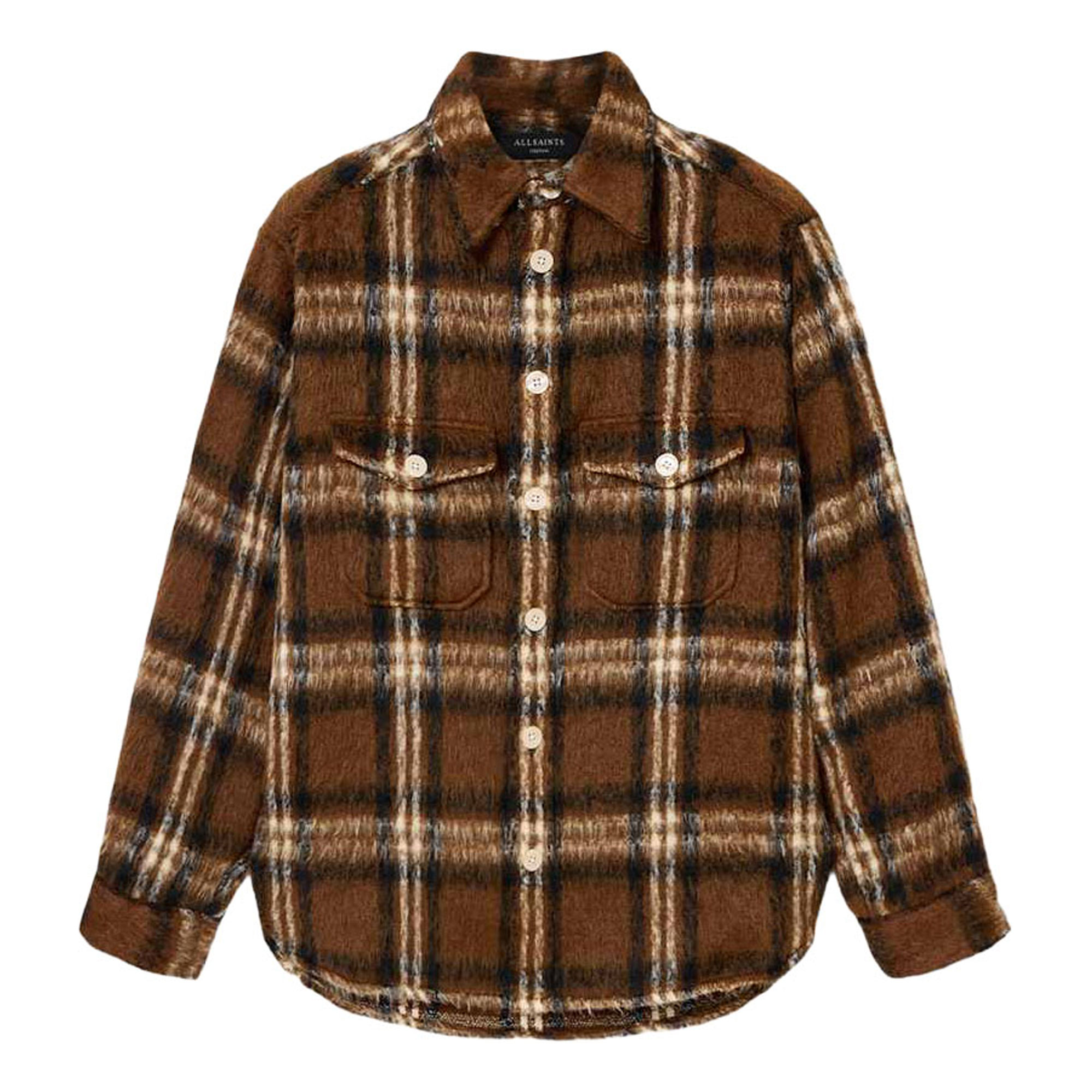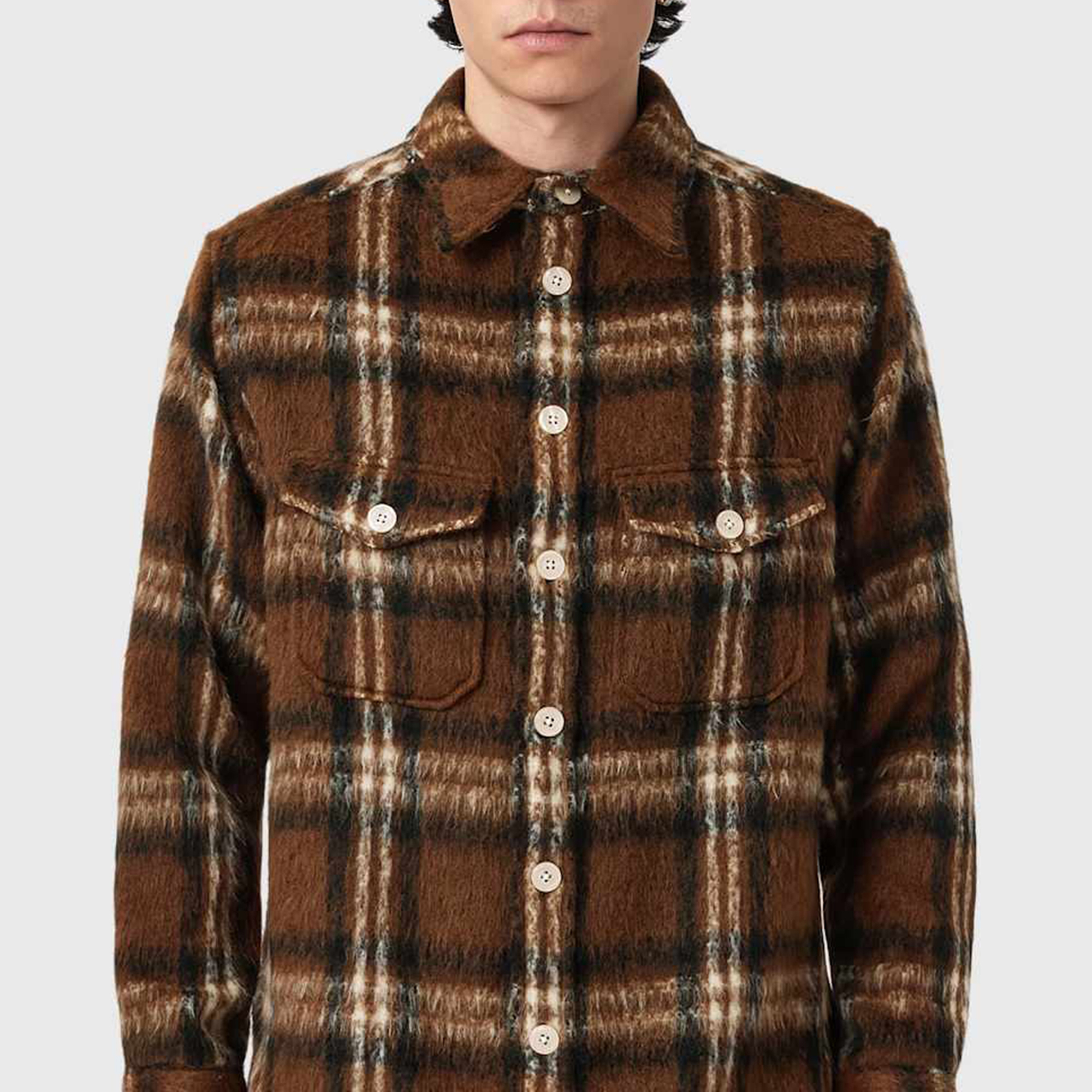 - Check pattern, long sleeve, branded button fastening, patch pockets with buttoned flap detailing, classic collar, buttoned placket cuffs