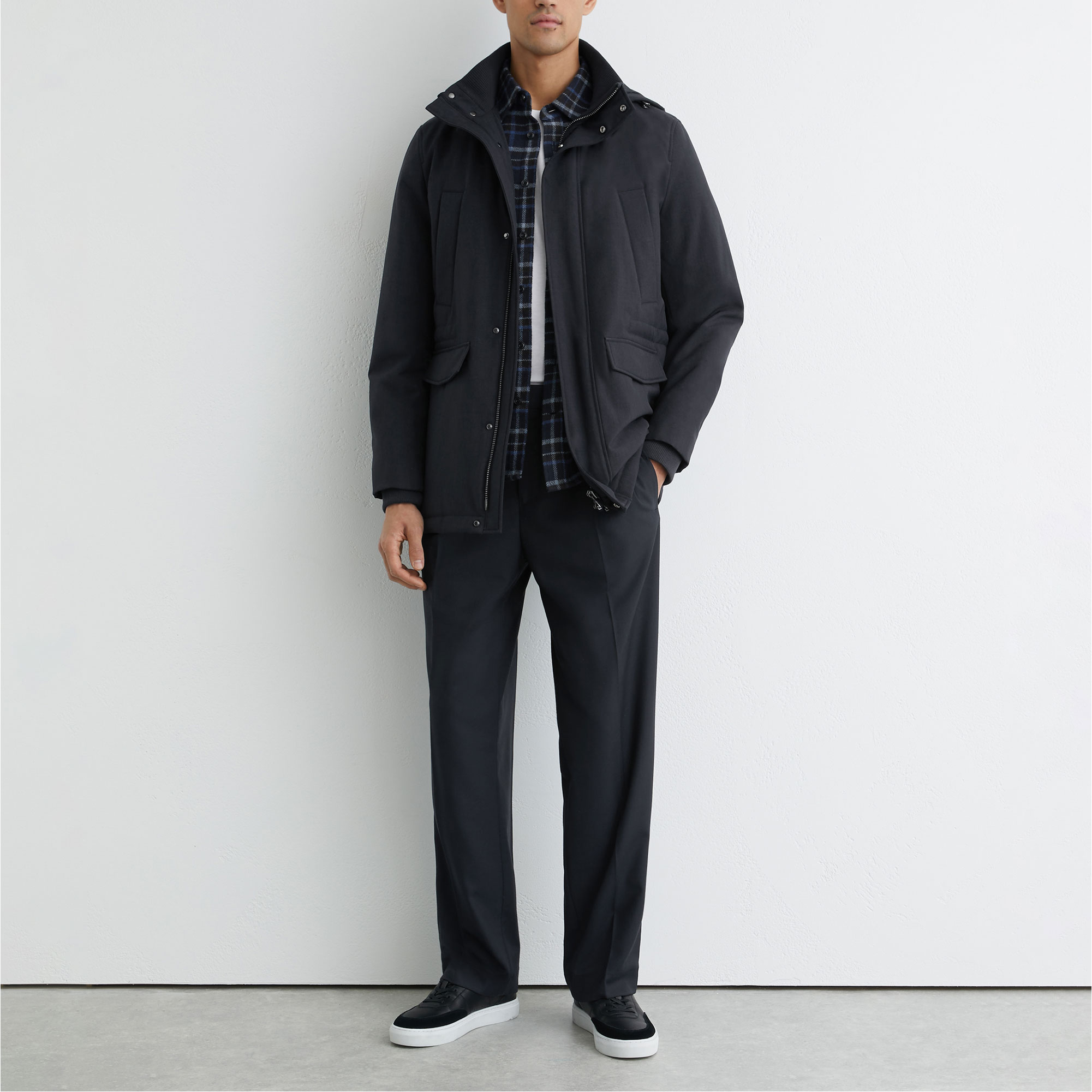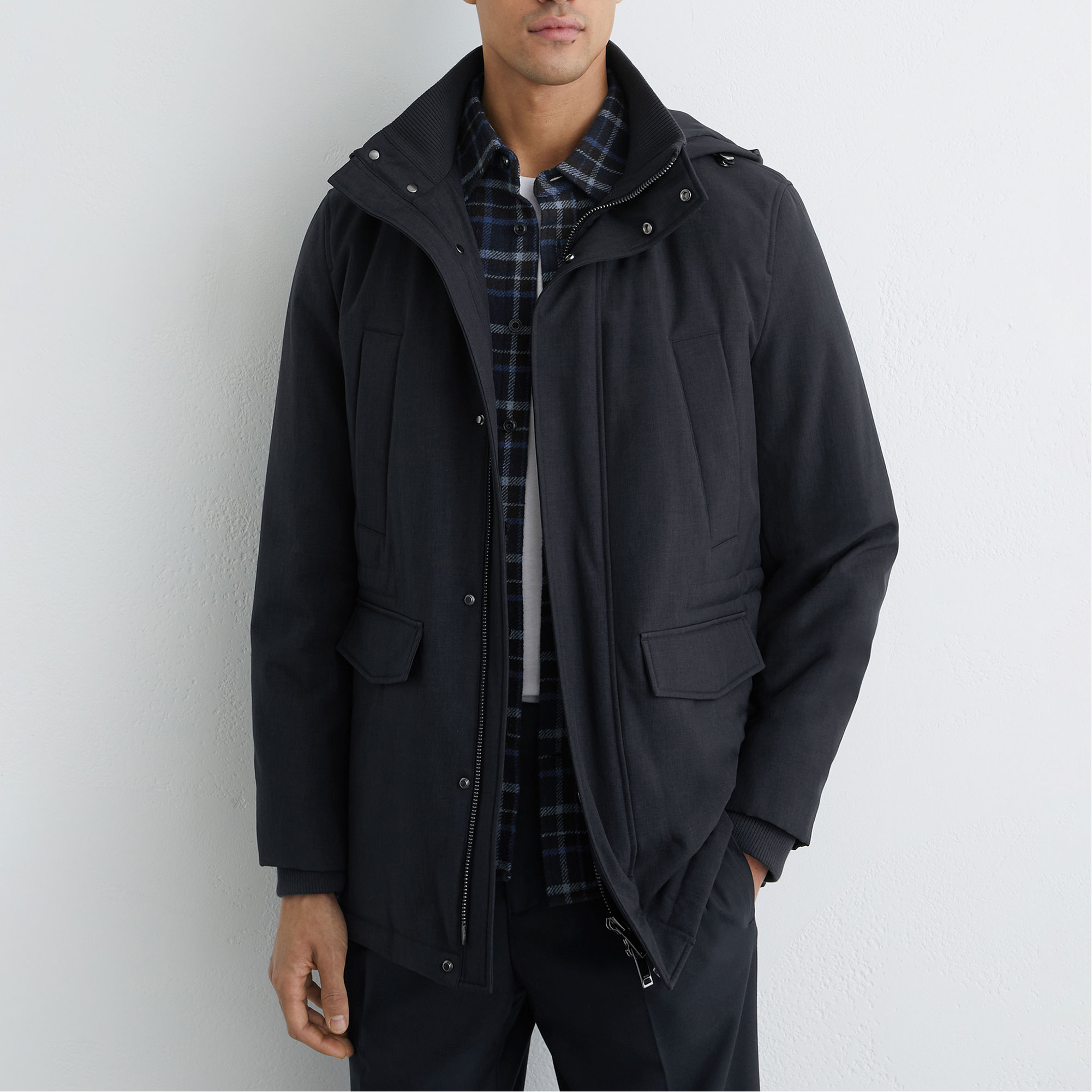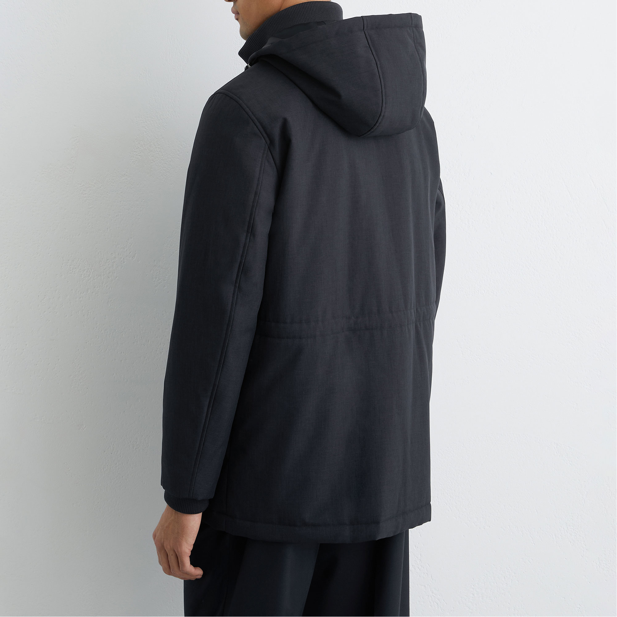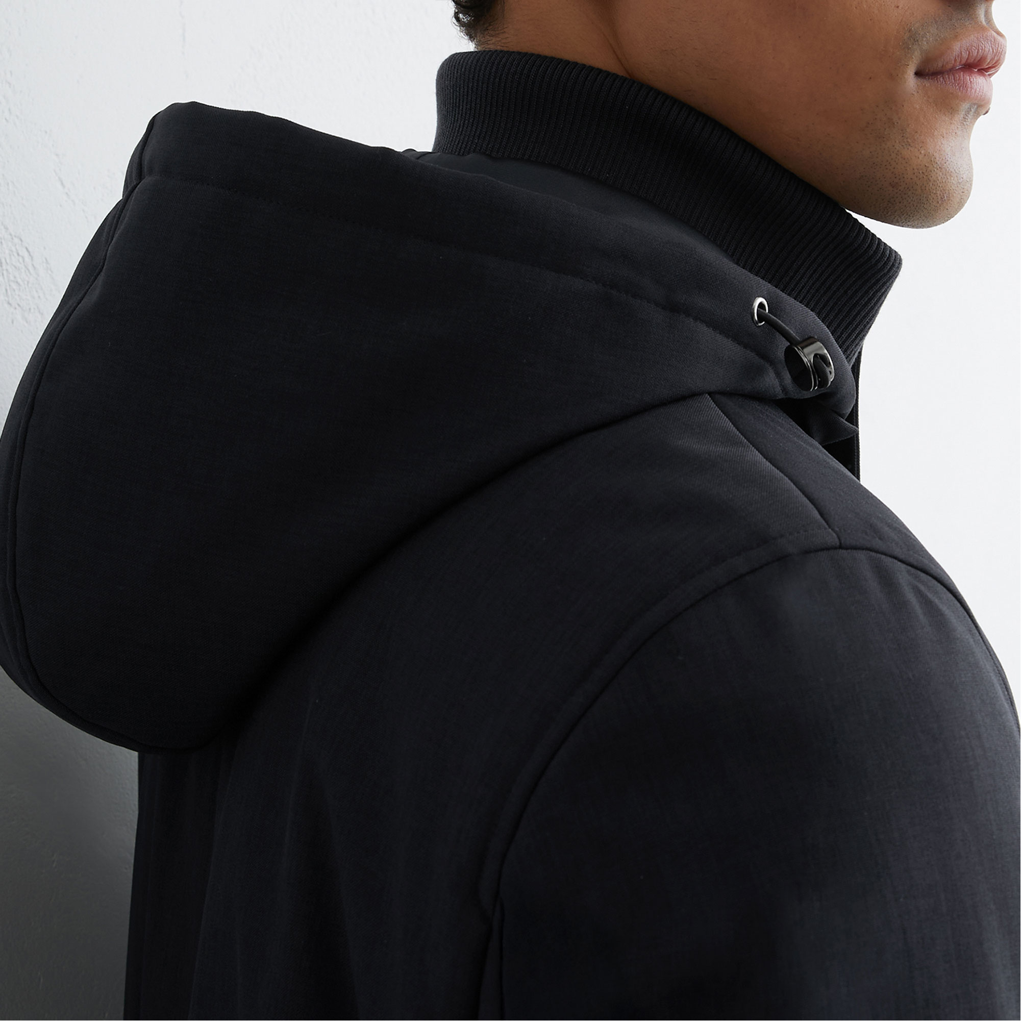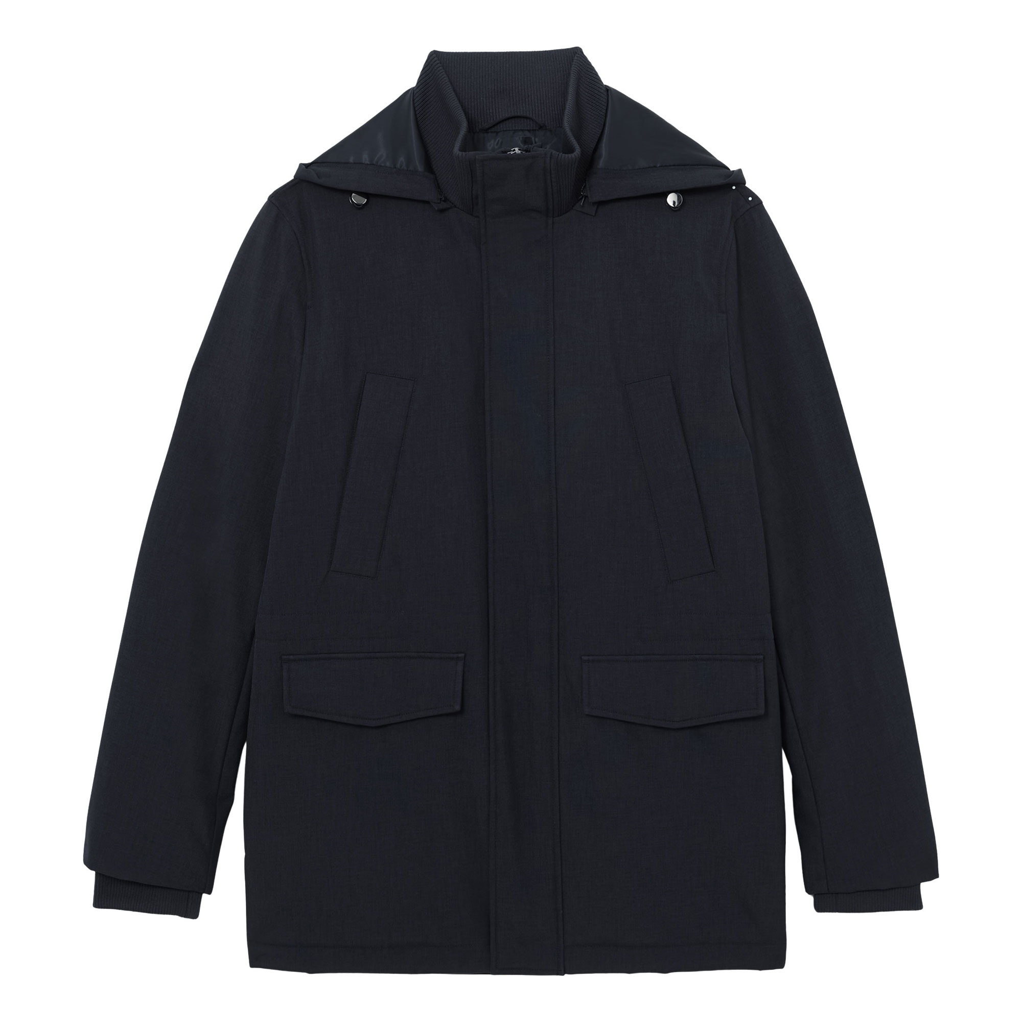 • Front zip, press-stud fastening, zip pockets, fully lined, padded, hood