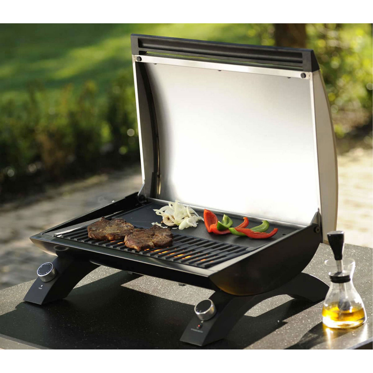 The Grandhall E-Grill is a handy compact and portable infra-red electric grill that is perfectly designed for balconies and small terraces and also easily generates as much heat as a conventional gas barbecue, ensuring that meat seals more quickly and thus stays more juicy and tasty.