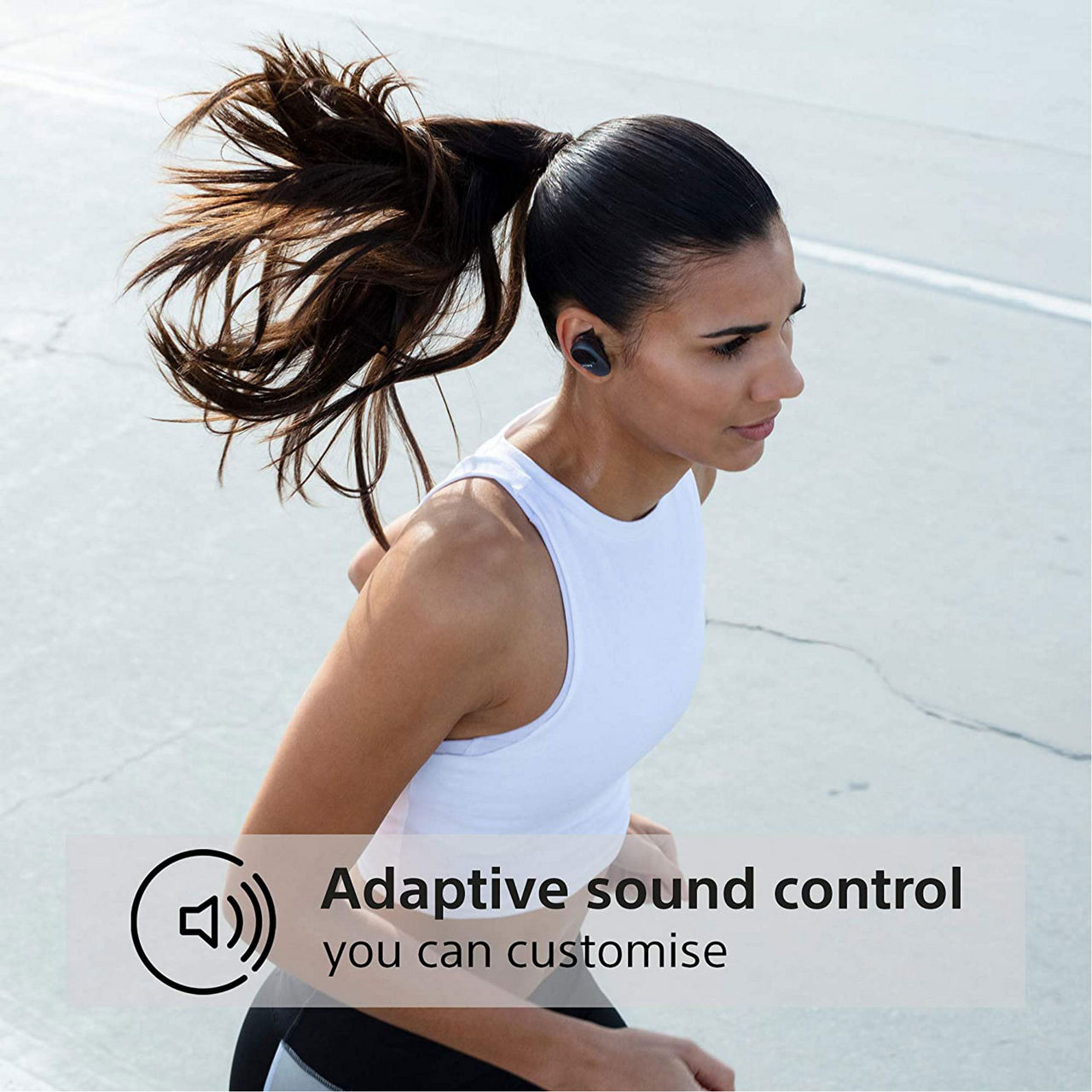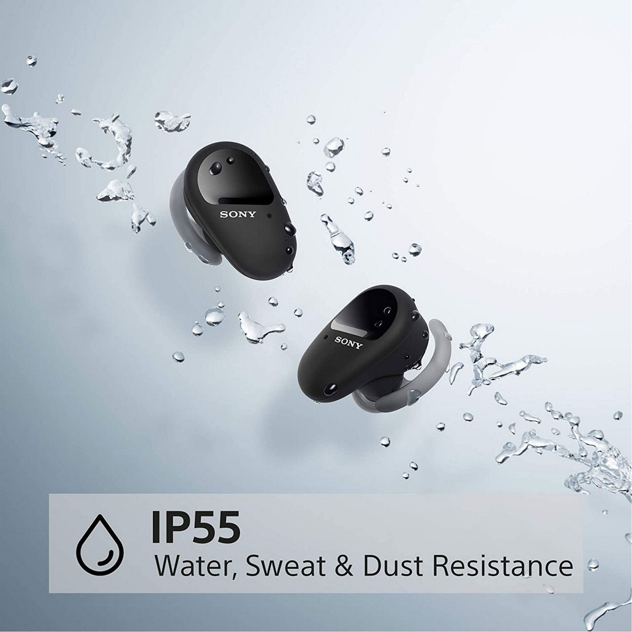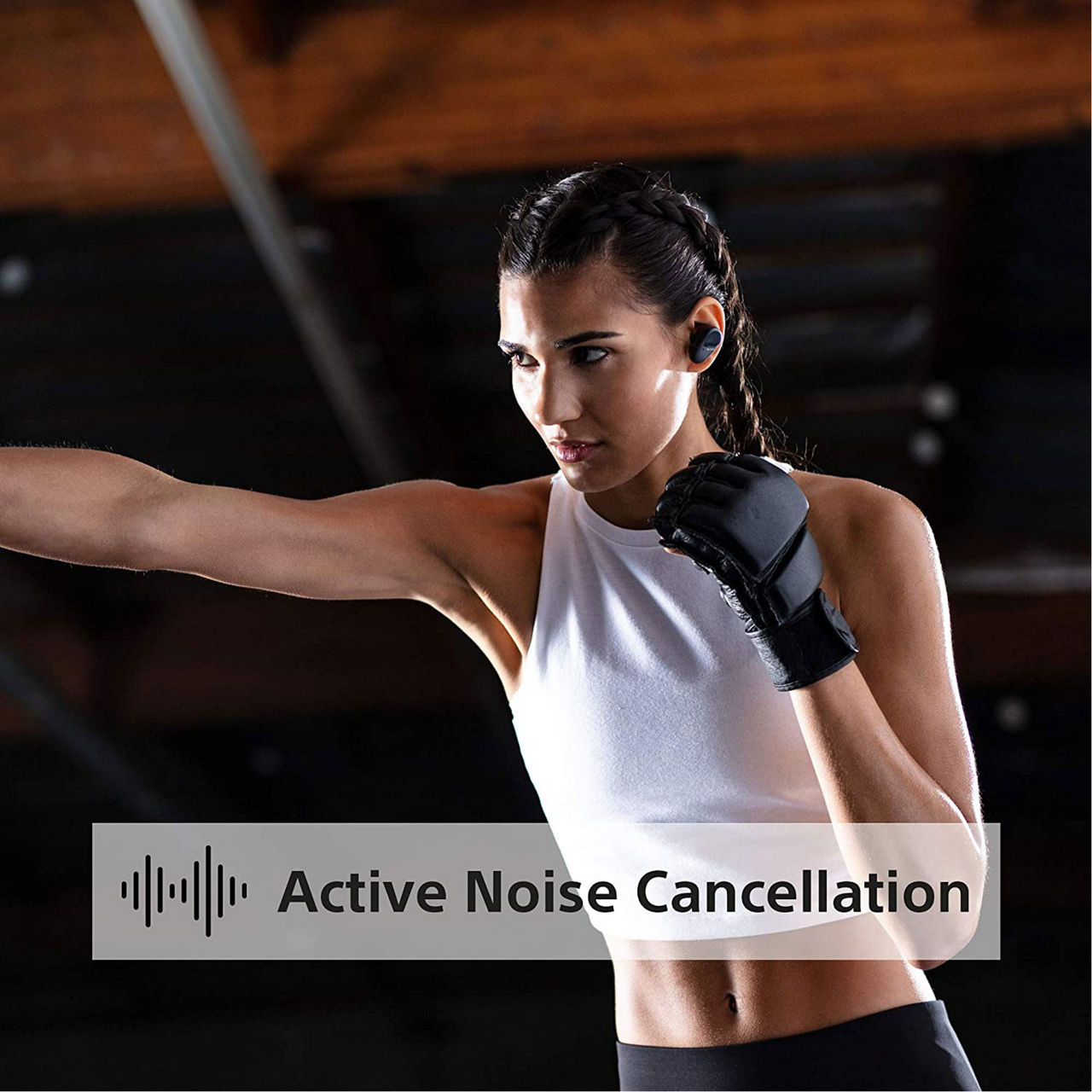 Truly wireless noise cancelling headphones for sports with stable BLUETOOTH® wireless connectivity, long battery life, IP55 rating water resistance, EXTRA BASS sound, and smart listening.