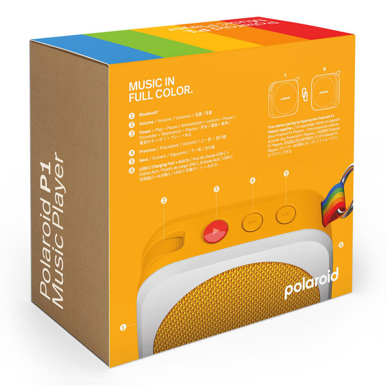 The most portable of the Polaroid Player family, the Polaroid P1 Player is about the size of a refreshing apple (yes, comparing speakers to fruit is a thing now). Designed for smaller spaces and intimate gatherings, pass it around and let the music flow. The Polaroid P1 speaker is all about simplicity, playfulness, and bold colors, with a hidden talent - tap two speakers together and you’ll create an immersive stereo pair with even more volume.
