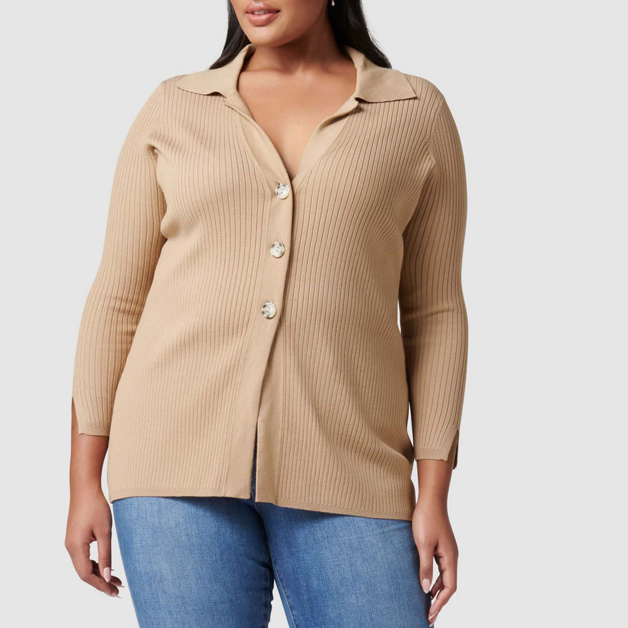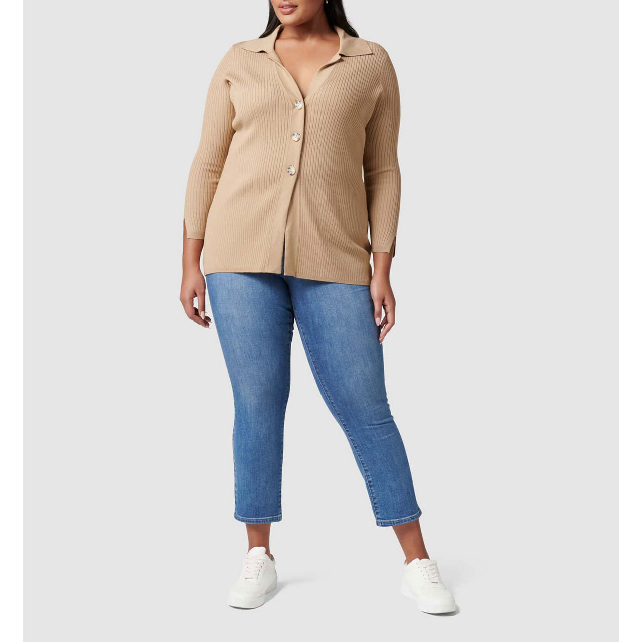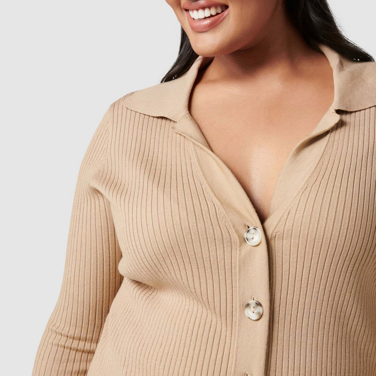 A sleek and trending cardigan top for everyday wear, the Beth cardigan from Forever New works a smart collar detail and rib knit fabrication.
