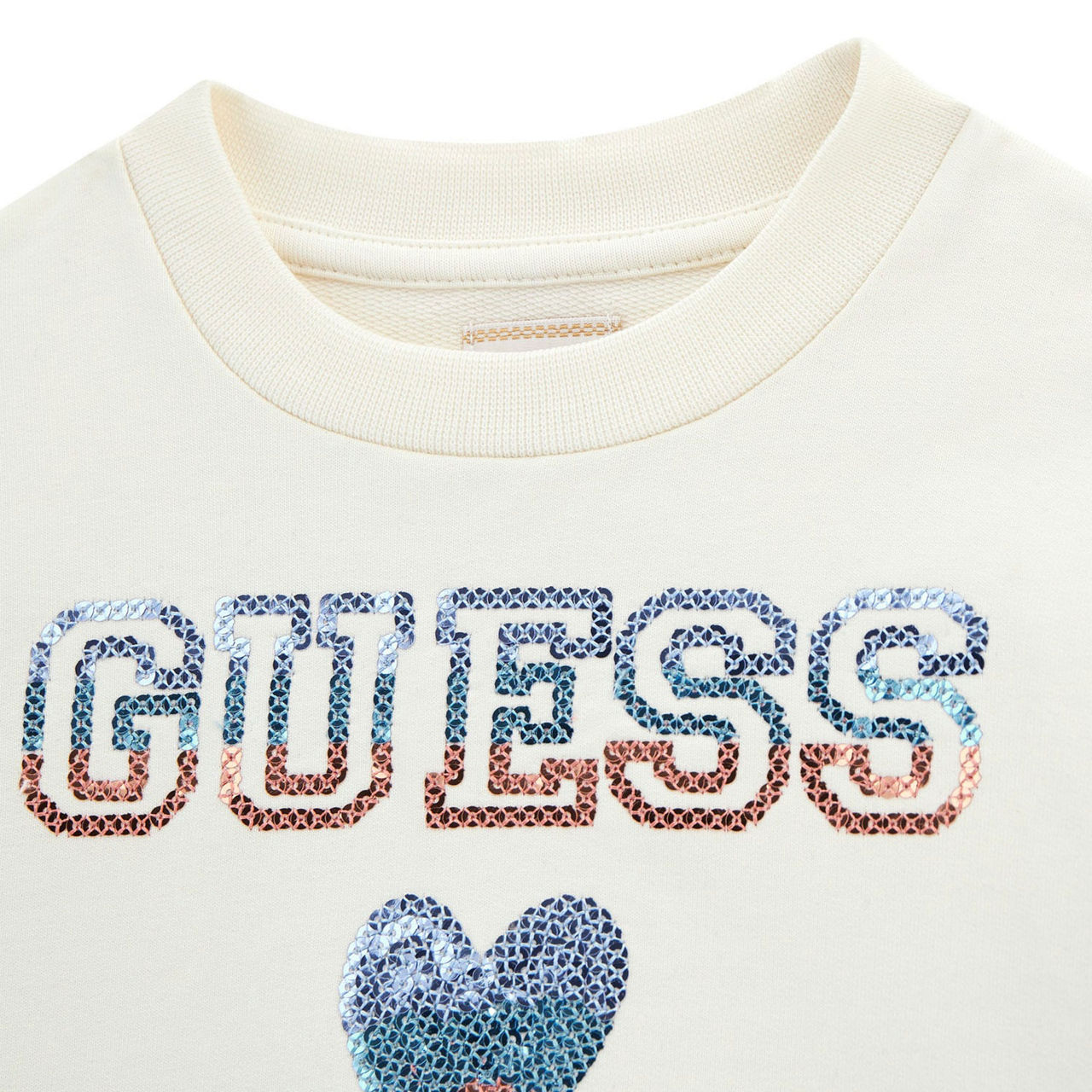• Round neckline, frilled trim, sequin heart logo detail, long sleeves
