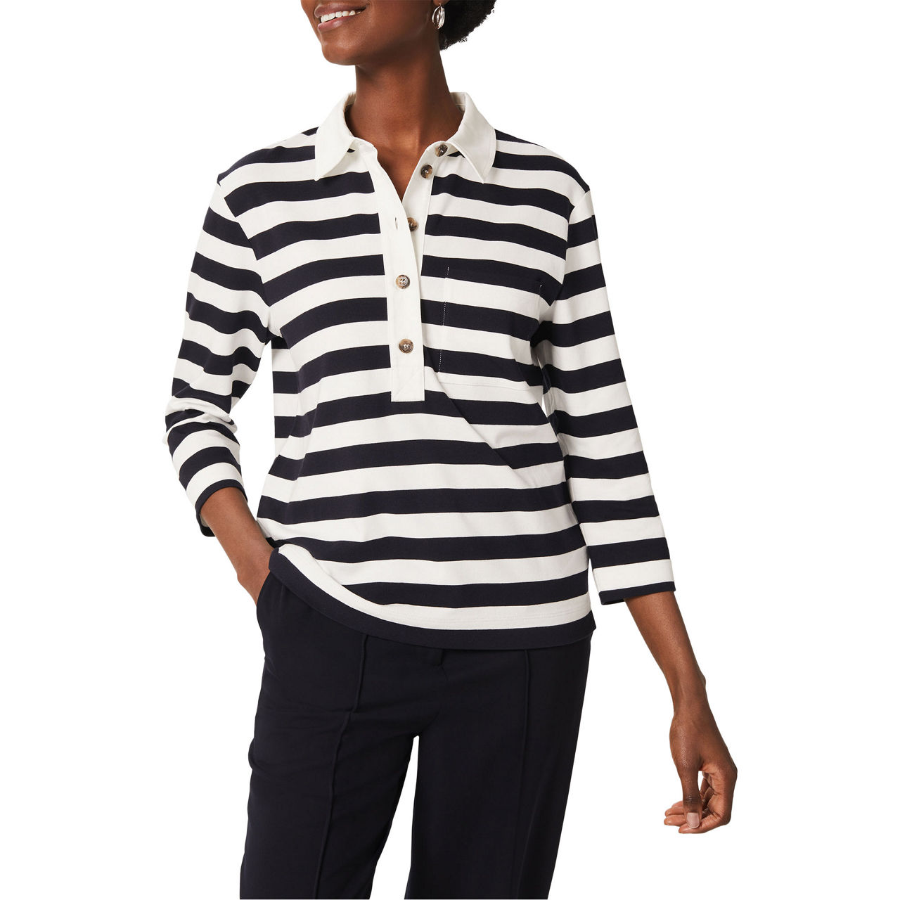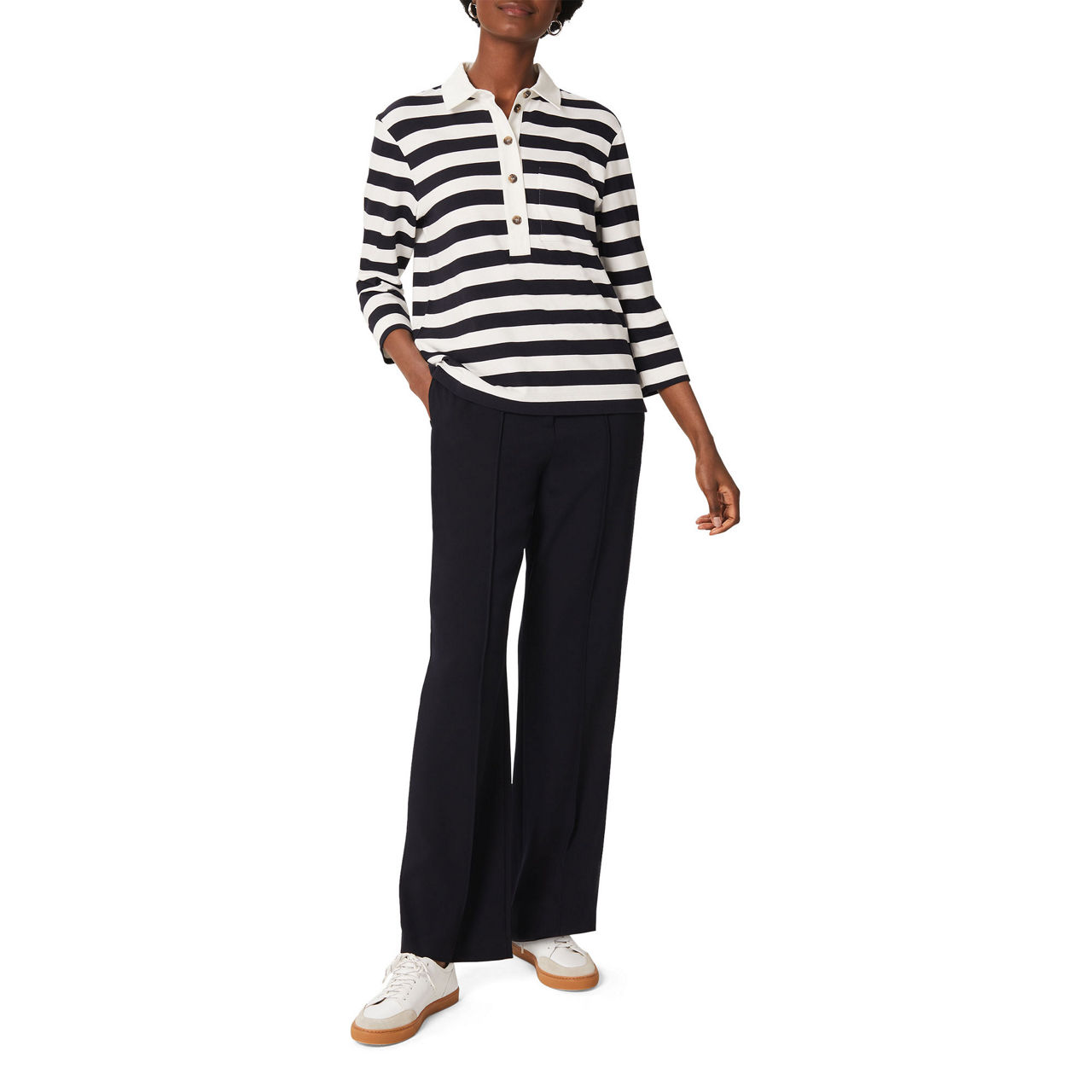 Cut to a relaxed, boxy fit for a laid-back feel, Hobbs' Lillie striped polo shirt exudes effortless appeal. Style the striped top with your weekend separates for a chic yet relaxed look.