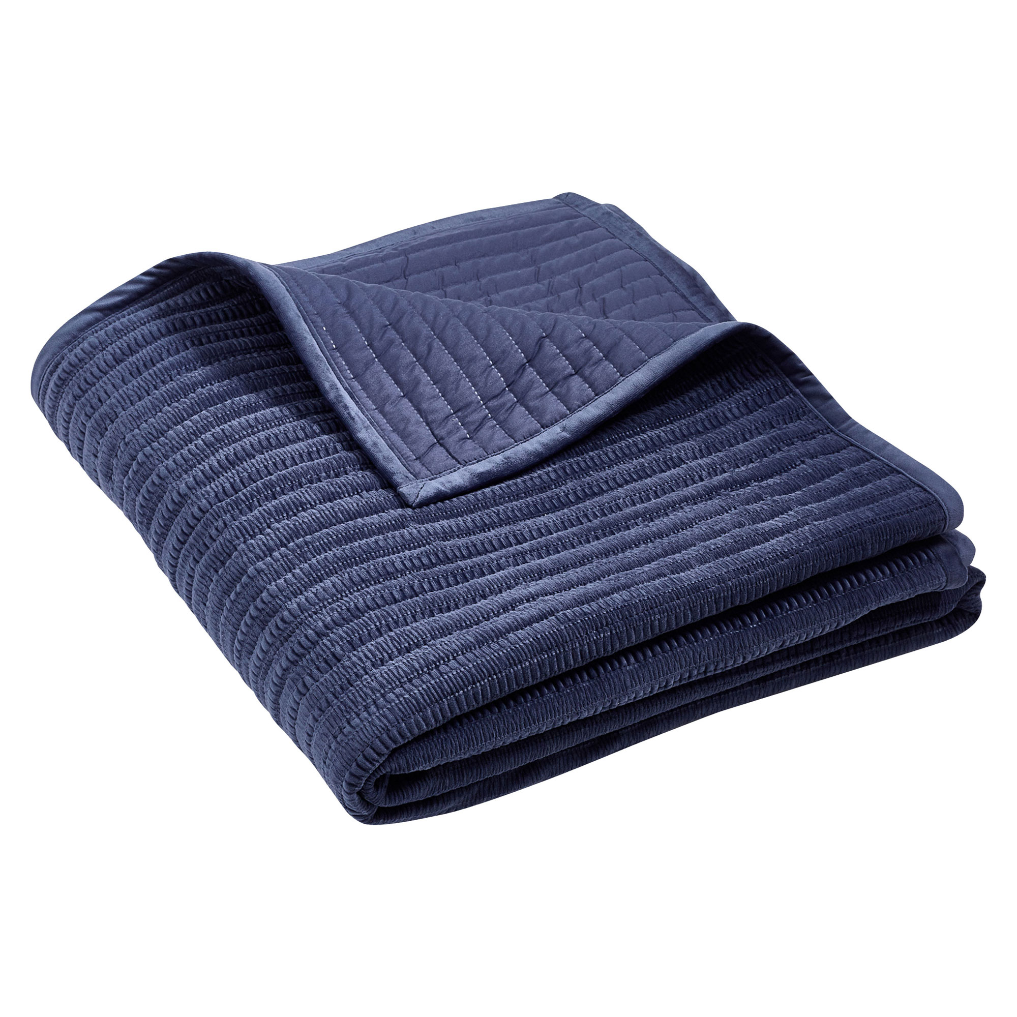 CATHERINE LANSFIELD Velvet Pinsonic Throw Navy Blue