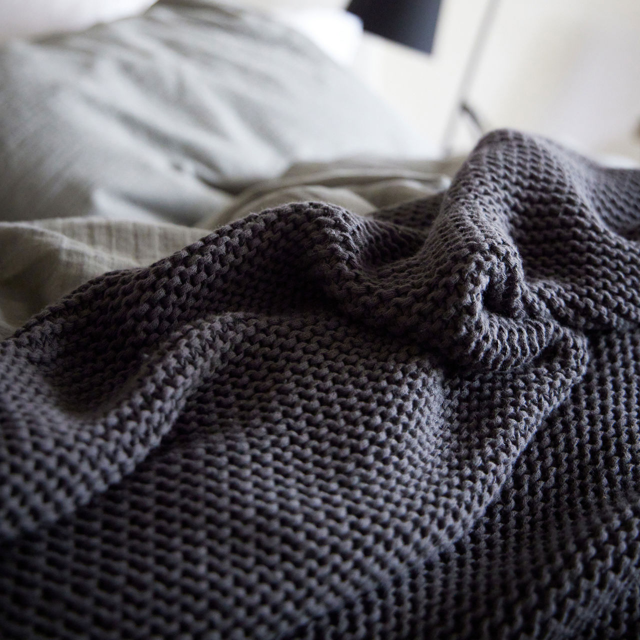 - Textured finish, chunky knit, throw style