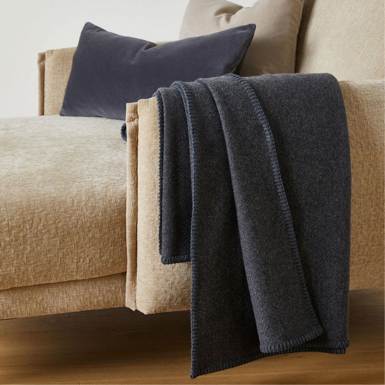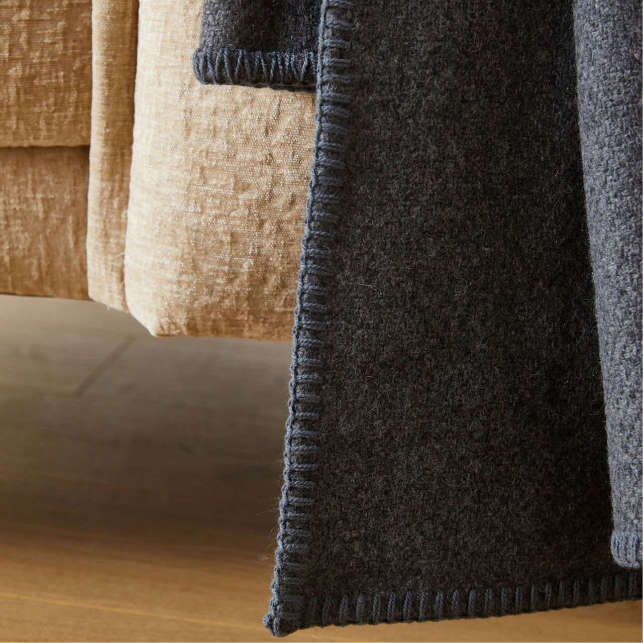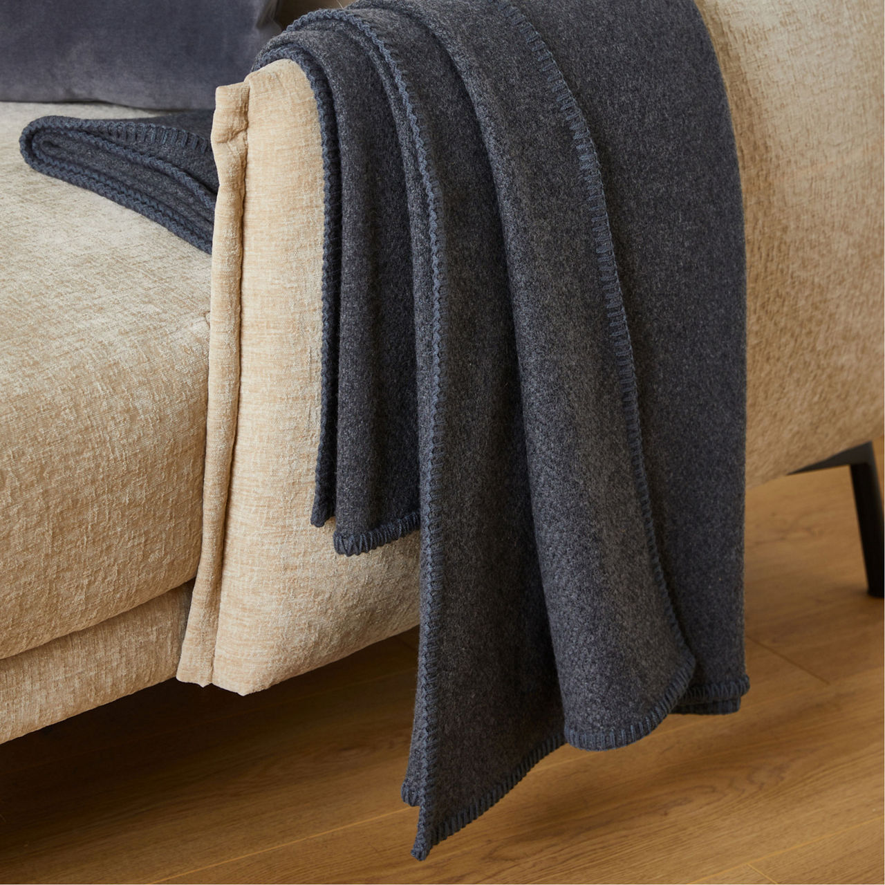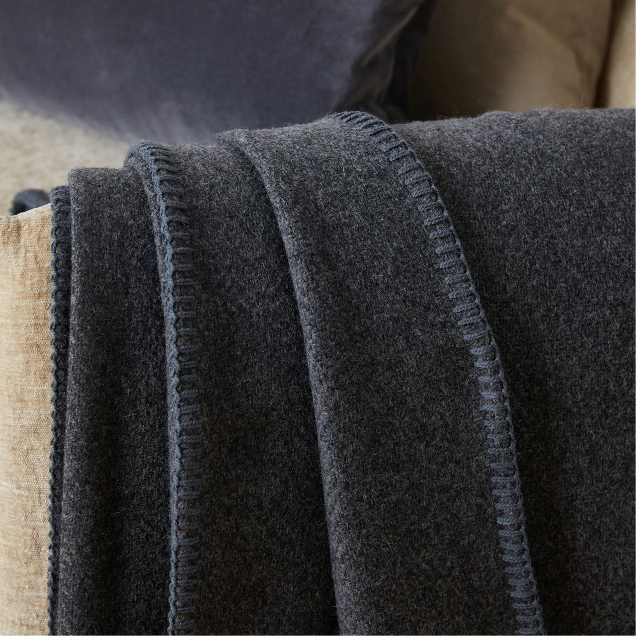 FOXFORD The Sustainable Edit Charcoal Blanket Stitch Throw