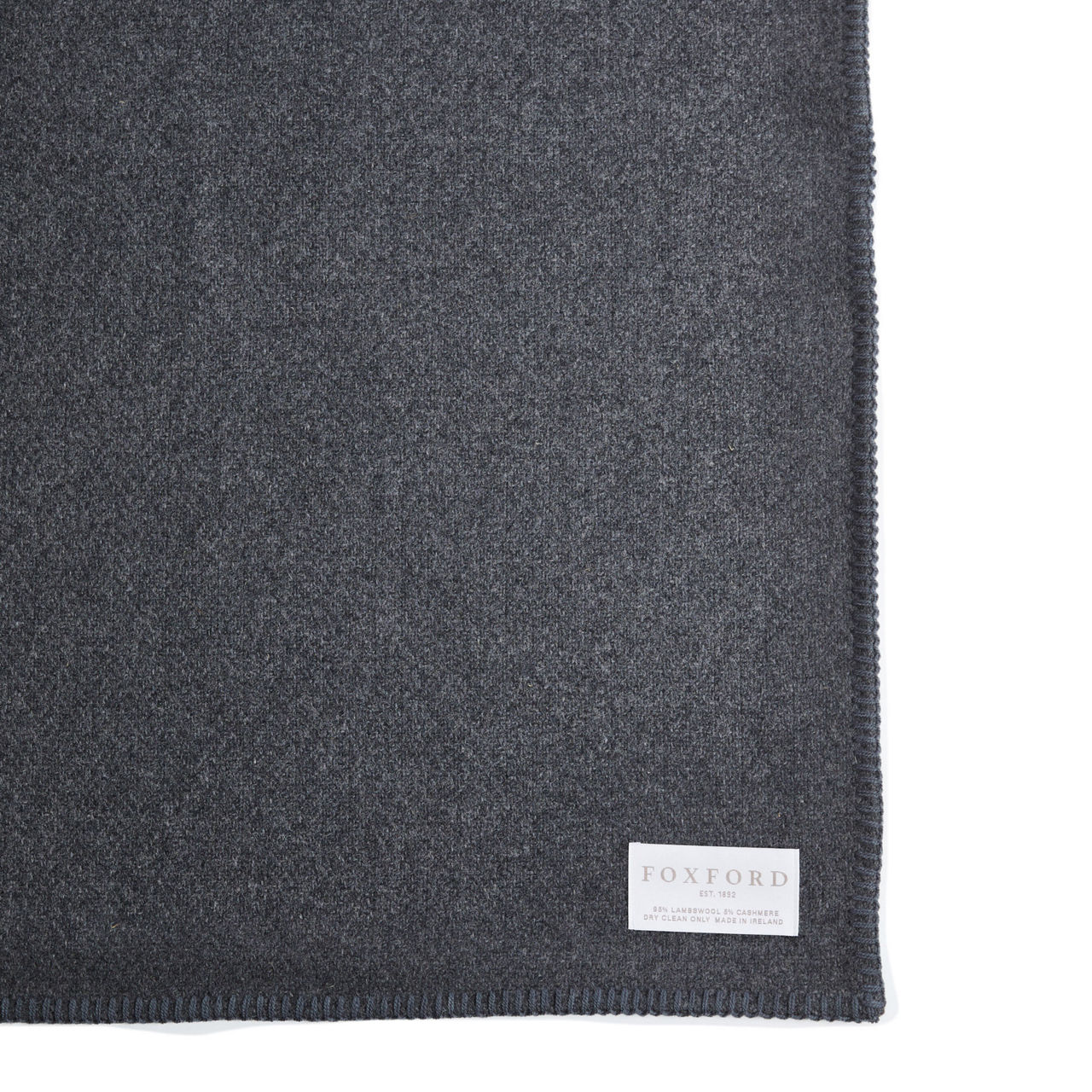 Experience the ultimate combination of luxury and style with the Foxford Charcoal Blanket Stitch Cashmere Blend Throw. This stunning throw features a refined Oxford grey shade with a matching charcoal blanket stitch.