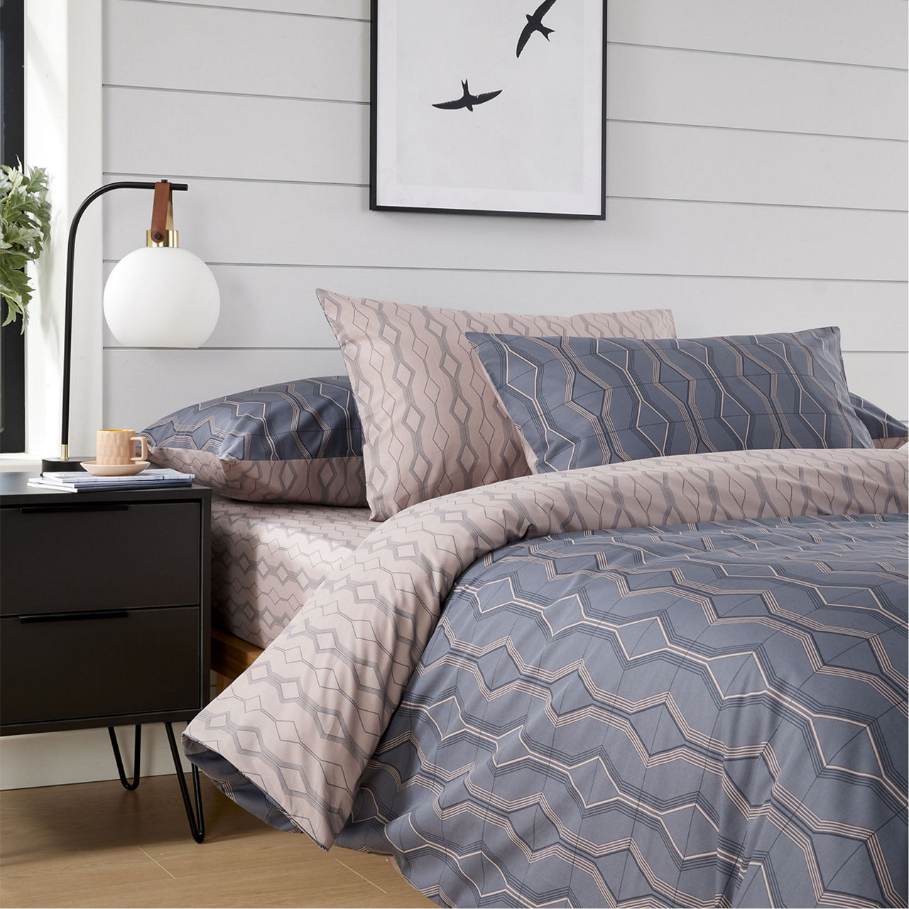 This simple but sophisticated geometric set from Christy features a striking Art Deco-inspired pattern in tonal shades of charcoal grey. The complementary print which features on the reverse is the perfect finishing touch to complete this elegant contemporary design.