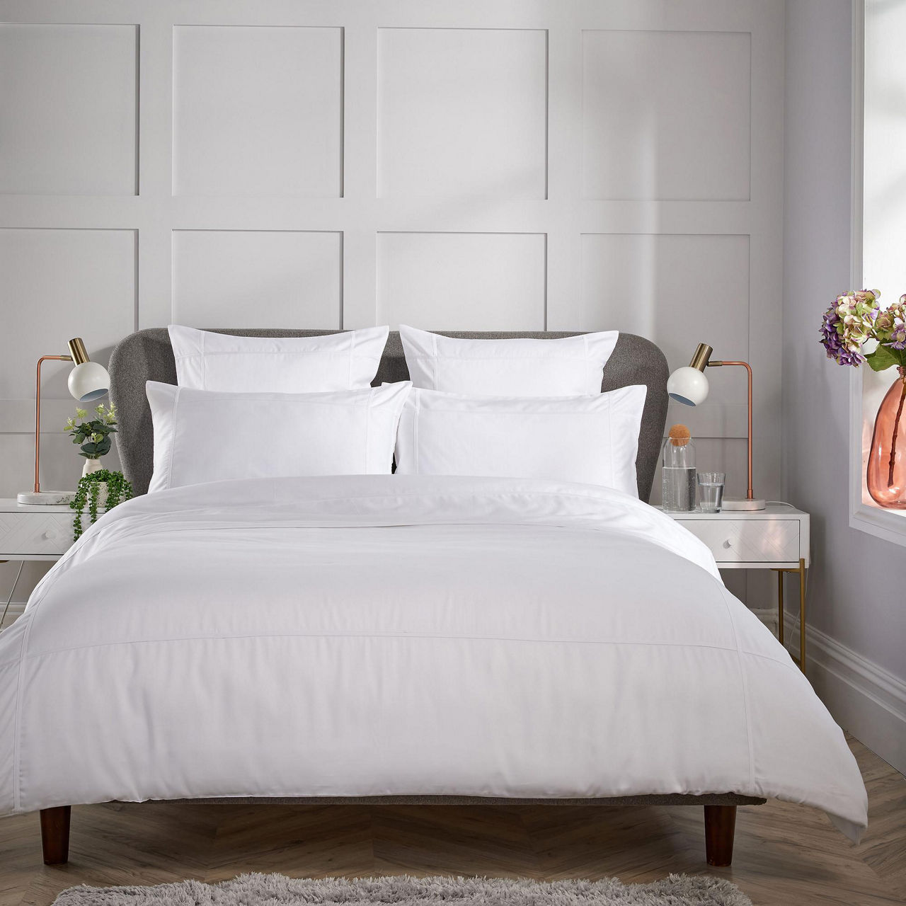 Beautifully created with contemporary styling and classic design in soft, yet densely woven 100% BCI cotton, 400 Thread Count fabric with applique band detail. Complete the experience with all the products in the range including the flat sheet & square pillowcases and enjoy the elegance and quality of five star hotel standards every night at home. Available in a selection of colourways. Blend in the Karla Bree throws & pillowshams for the ultimate look. Duvet set includes pillowcase(s).