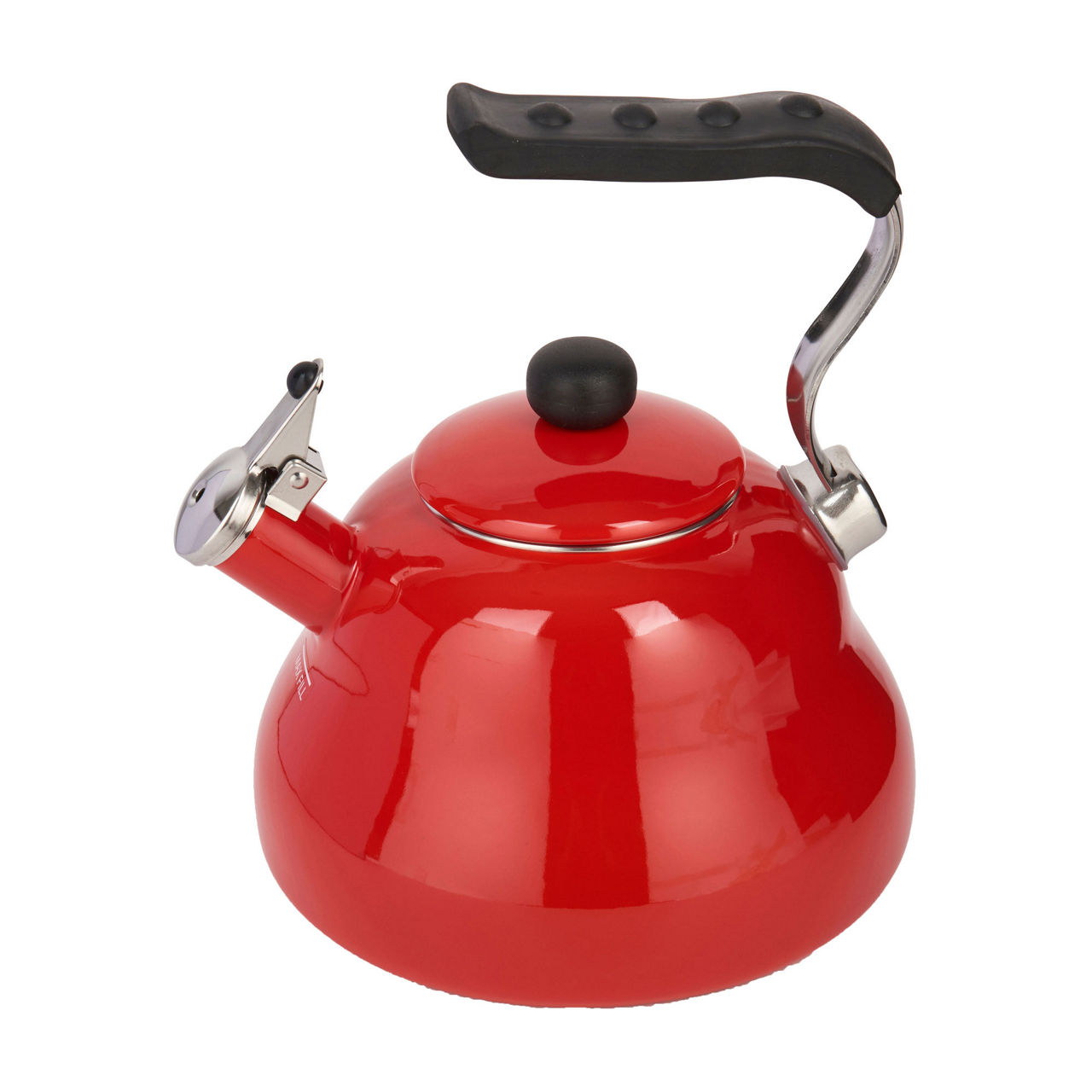 • Retro style, flip lid, stay-cool handle, whistle feature, enamel finish