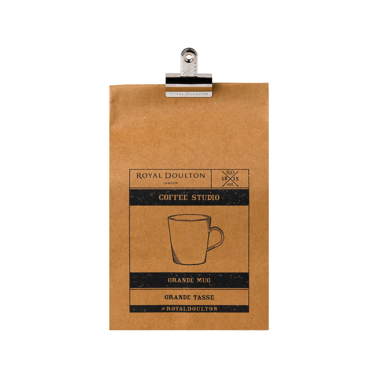 Inspired by the relaxed vibe of a coffee bar, Royal Doulton's Coffee Studio collection is ideal for every coffee lover. Bring the aroma and taste of your favourite coffee house home with this Grande Mug. Featuring a contemporary partially dipped grey glaze, this mug is great for your freshly brewed, slow pour filtered or French press coffee. This item makes the ideal gift, perfectly packaged in a stylish folded coffee bean style bag finished with a Royal Doulton bull dog clip.