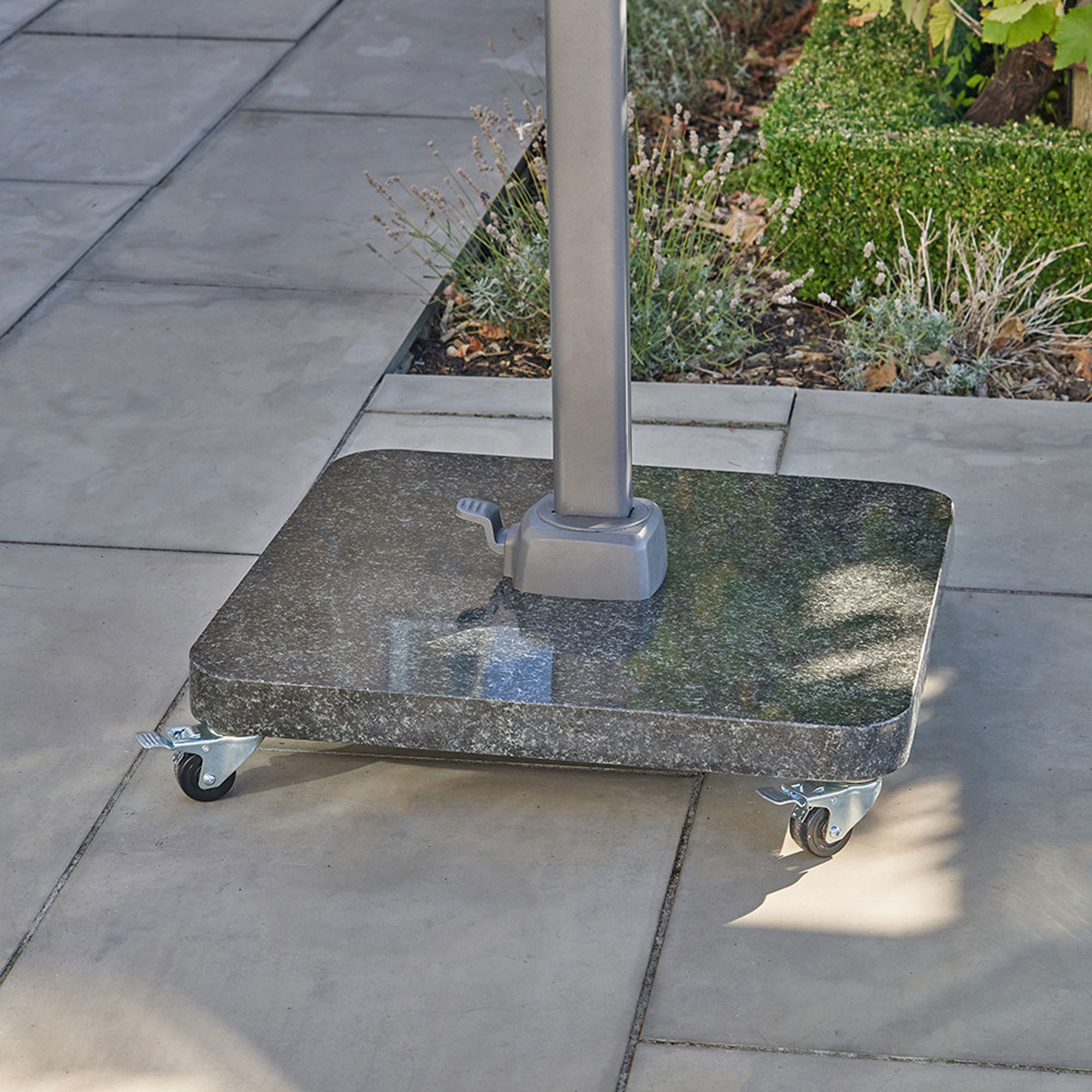 - Composition and Care: Pole: Stainless steel, powder-coated aluminium. Parasol: Polyester fabric. Base: Granite. It is recommended to use a cover to protect your parasol while not in use