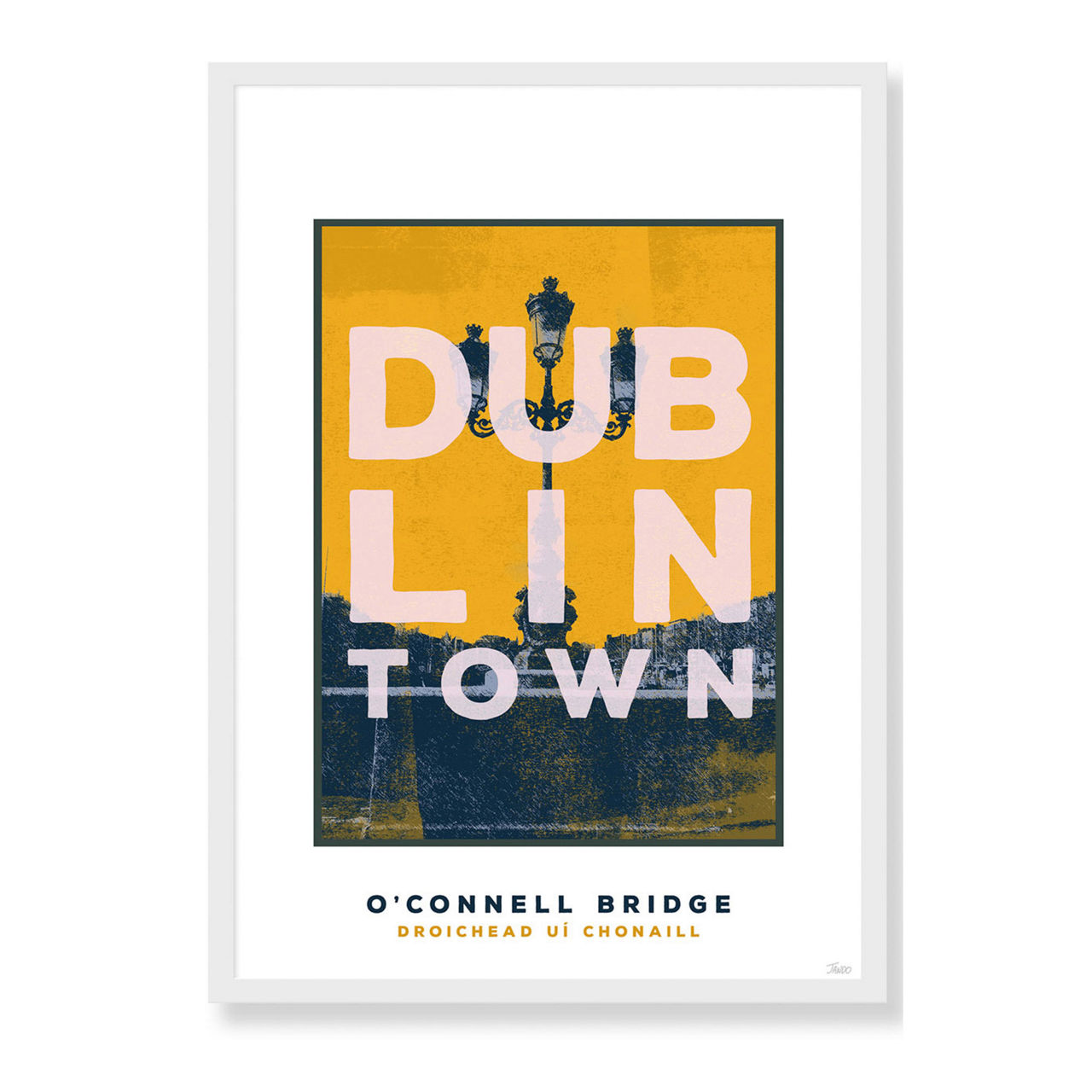 Featuring Dublin's iconic O'Connell Bridge, this framed print is part of JANDO's Dublin Town series, a bold and contemporary collection of open edition prints inspired by Ireland’s heritage, culture and architecture. Printed on archival paper using pigment based inks and framed in a beautiful white handmade frame using 100% ash from sustainably managed forests.