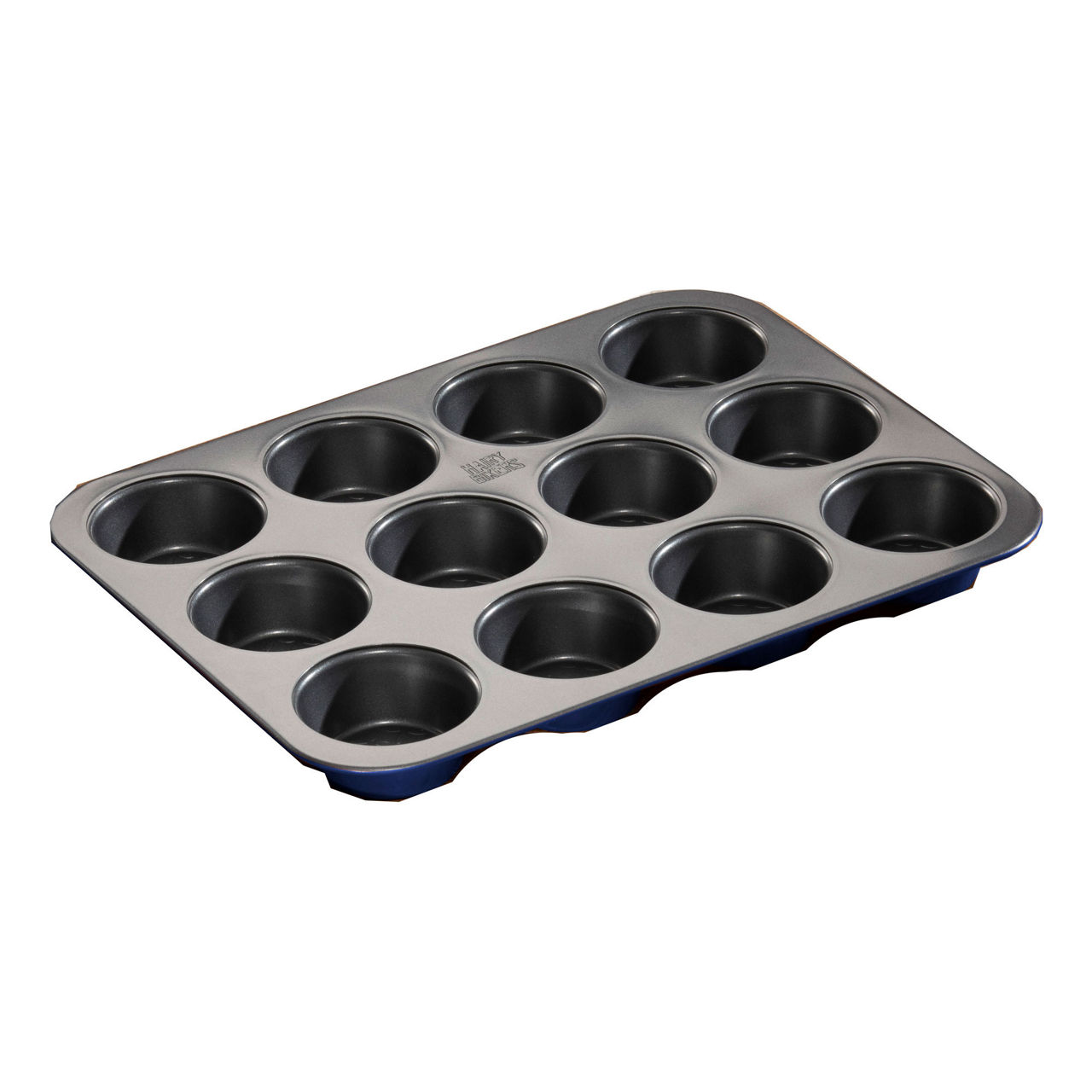 Hairy Bikers BKW1546 12 Cup Muffin Baking Tray Cake Cupcake Oven Pan Non Stick Carbon Steel Dishwasher and Freezer Safe Blue 35 x 26.6 x 3.2cm