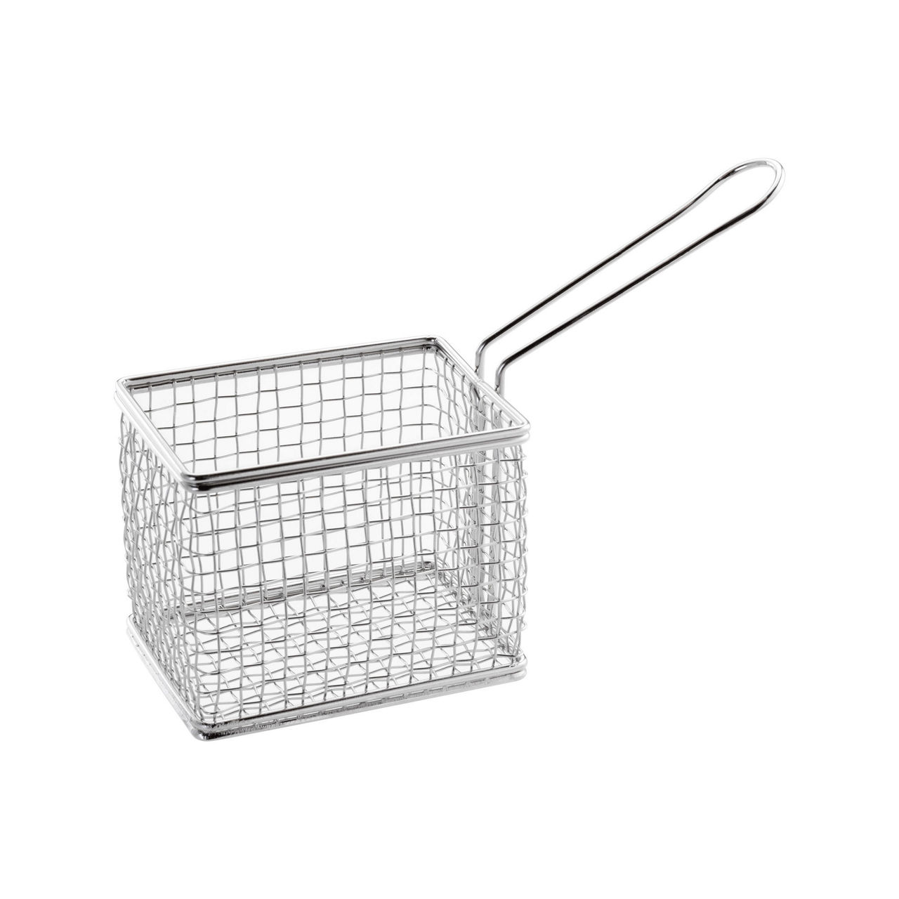 Judge TC370 Mini Chip Basket, part of the Judge Kitchen Essential Range, 8.5 x 7.5 x 10cm 18/8 Stainless steel. This mini chip basket is a replica of a full sized frying basket.Designed for serving purposes this basket looks great on a table serving chips, chicken, scampi or battered foods like onion rings.