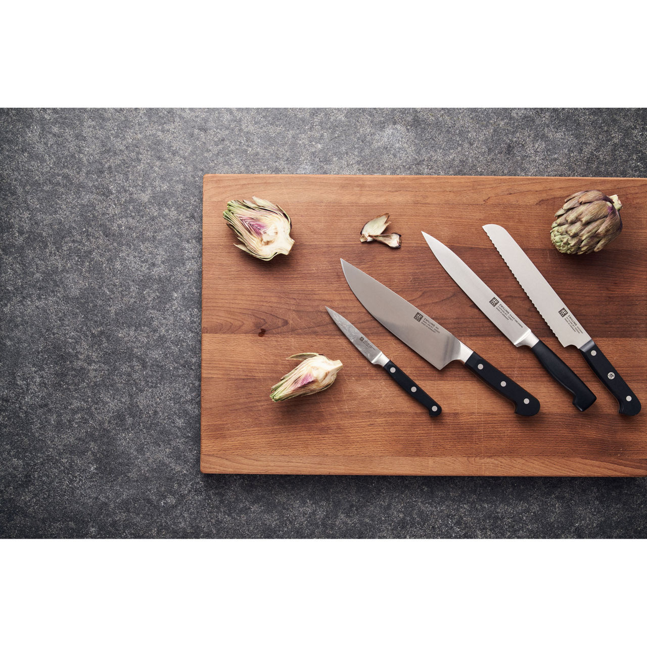 The robustness, the ice-hardened blade, the attractive three-rivet design and the low weight are the features that are valued in the Gourmet series from ZWILLING. Thanks to the blade's V-edge design, the knife retains its sharpness for a long time. It gives consistently high and stable cutting performance, meaning you can effortlessly cut even the most solid vegetables. The kitchen knife was made in Germany with the greatest care and precision. Dishwasher safe but hand washing recommended.
