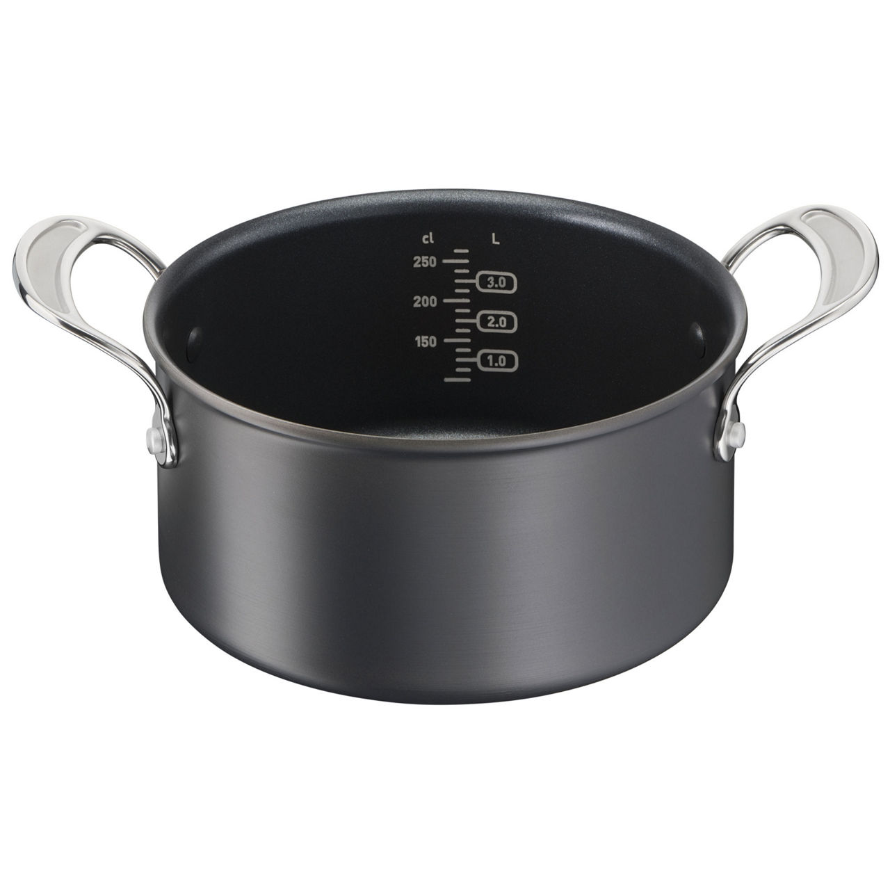 - Go pro: In tough hard anodised aluminium, our premium pan range offers superior durability, even heating and non-stick performance for a lifetime of professional-style home cooking. Last longer: Infused with titanium to last even longer, the non-stick coating is super-durable, easy to clean and metal utensil-safe. For peace of mind, the range is backed by a 2-year Tefal guarantee*. Cook healthily: Tefal’s titanium-infused non-stick coating contains no harmful or toxic chemicals. Rest assured, it’s 100% safe†, for worry-free cooking. Be flexible: We’ve made these pans 10mm deeper‡ to allow a wider range of culinary uses, and added interior measurements to saucepans and stewpots, so you can gauge quantities directly in the pan. Take it easy: Stylish and practical, the flat glass lids let you keep an eye on cooking without losing any heat, while riveted stainless-steel handles with silicone insert ensure a secure, comfortable grip. Cook confidently: The new Thermo-Signal™ on all pots and pans indicates the ideal temperature to start cooking, while extra-thick Thermo-Fusion™+ bases ensure fast and even heat diffusion. Expand your options: These pans perform brilliantly on any hob type (even induction) and are oven-friendly§, too. So, put slow-cooked lamb shanks back on the menu and let the oven do the work. Skip the washing-up: When you’ve finished cooking, you can pop these pans in the dishwasher. Mind you, the non-stick is so effective that you might not need to. Happy days!