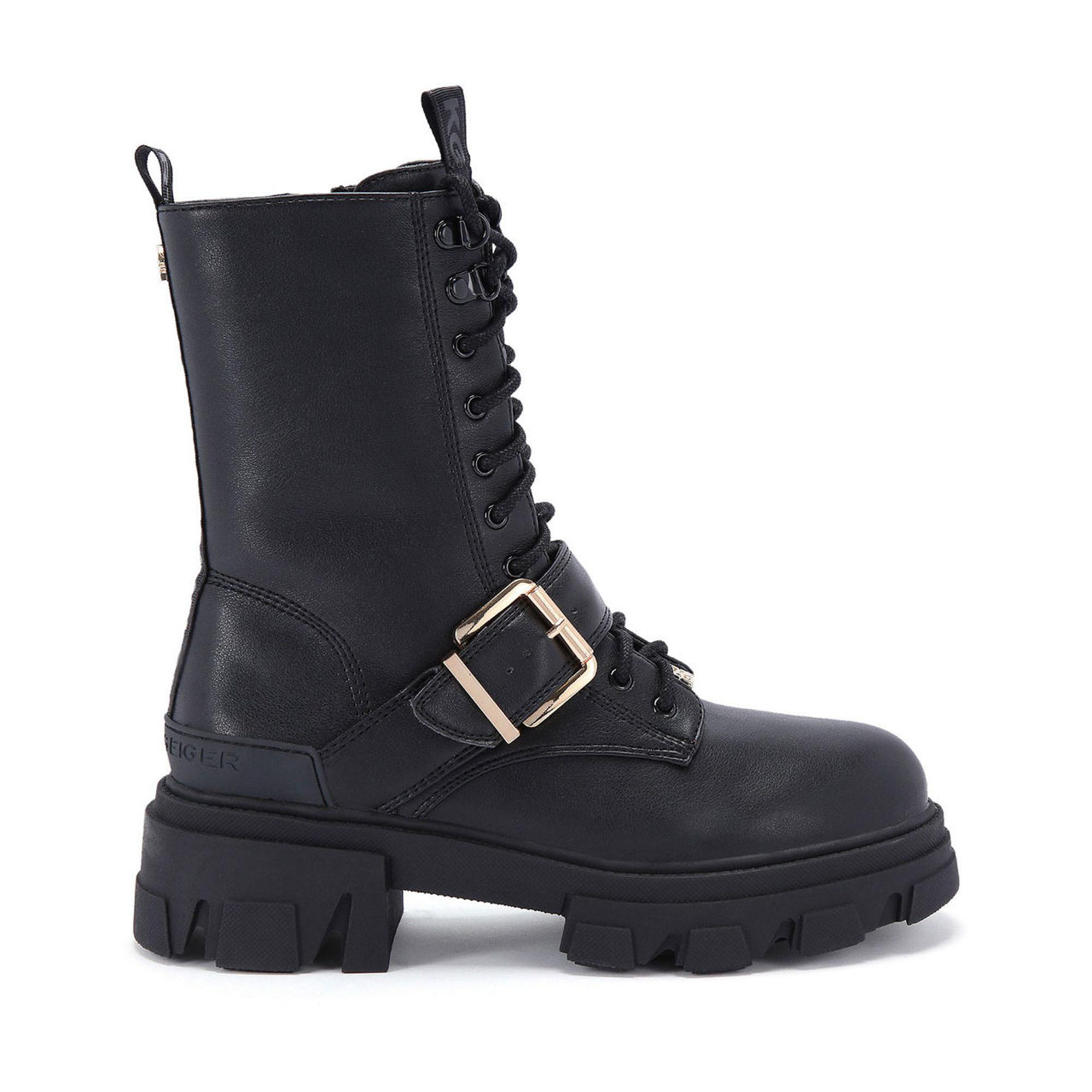 - Lace-up fastening, closed toe, round toe, closed back, chunky sole, pull tab at the back