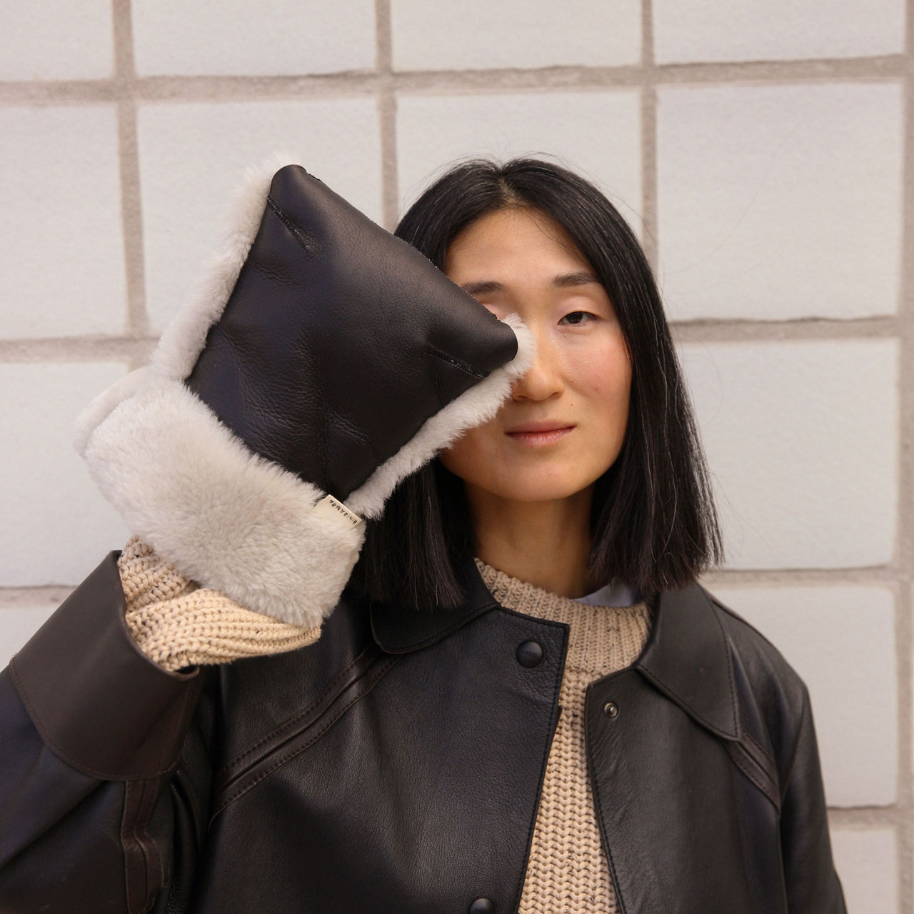 - Composition and Care: 100% merino sheepskin. To keep your BINI mittens at their best, regularly brush the insides with our sheepskin Binibrush to keep the pile looking its best. With dark colours there can be some initial colour transfer with use
