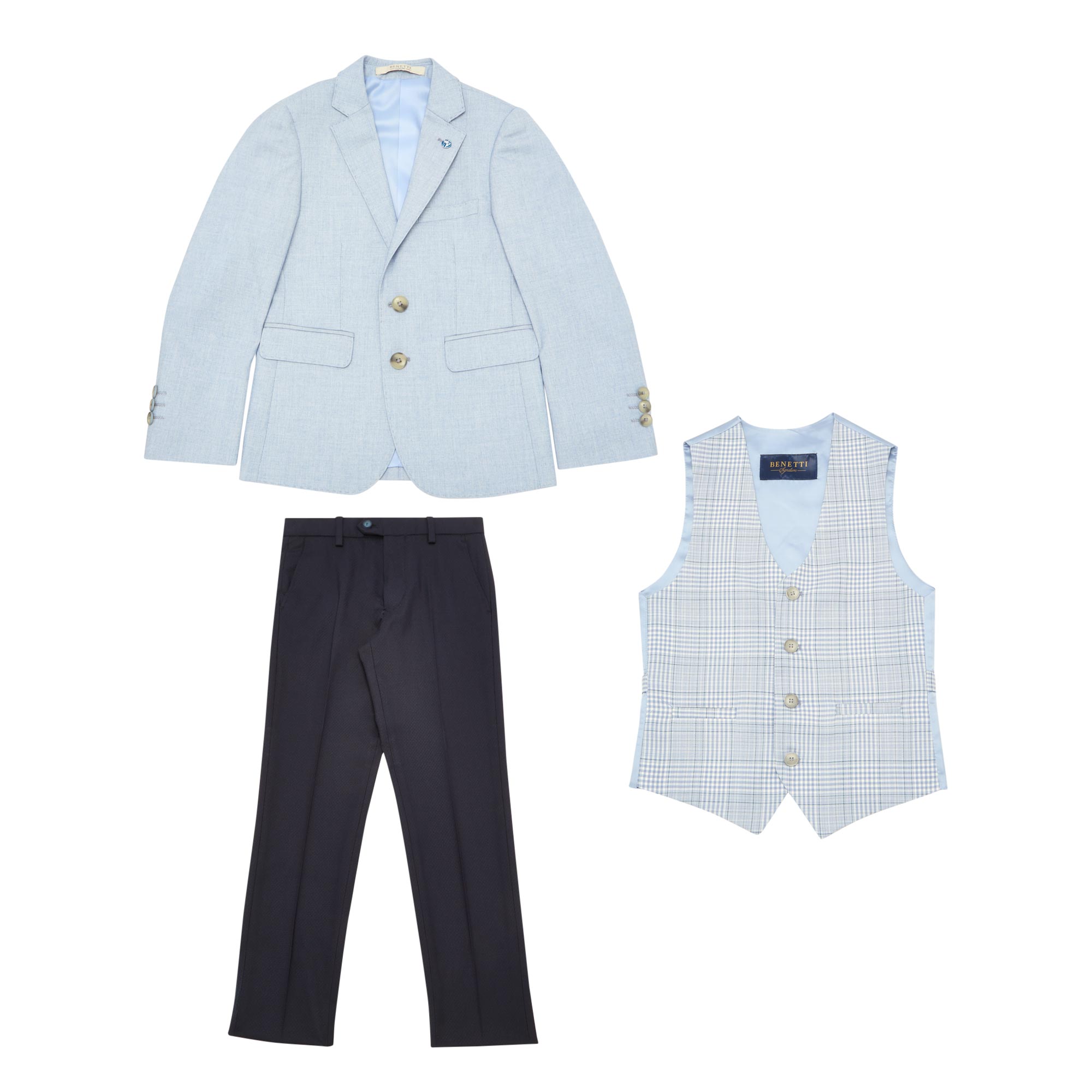 Benetti's stylish and sophisticated designs has your dapper gentleman covered for all special occasions, from communions to weddings, and everything in between. Meticulously tailored to elevate any look, allow the little man in your life to express himself with added confidence and charm that comes with the brand's quality craftsmanship and attention to detail.