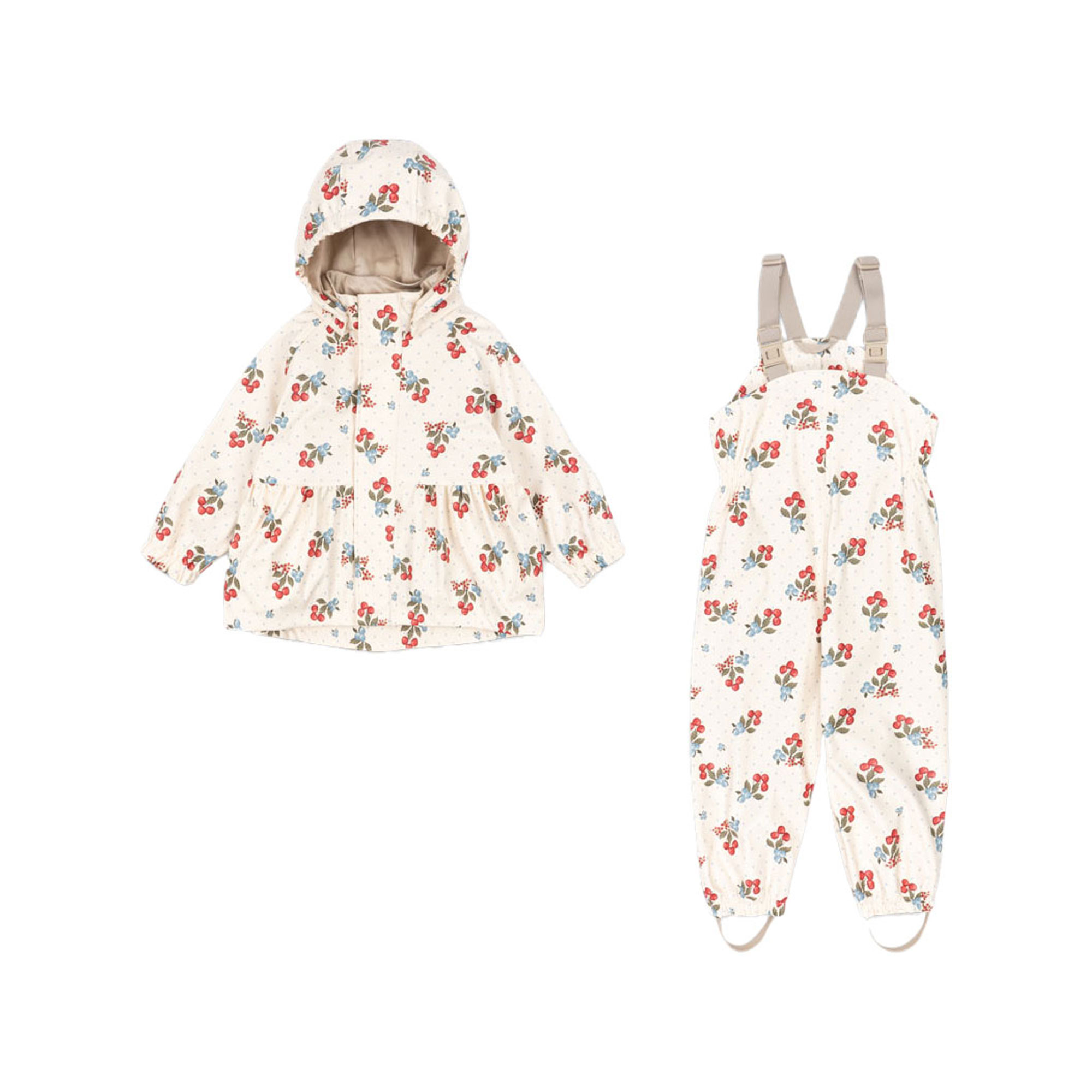 KONGES SLOJD Girls (3-16 Years) Palme Cherry Rain Jacket & Dungarees Two-Piece Set
