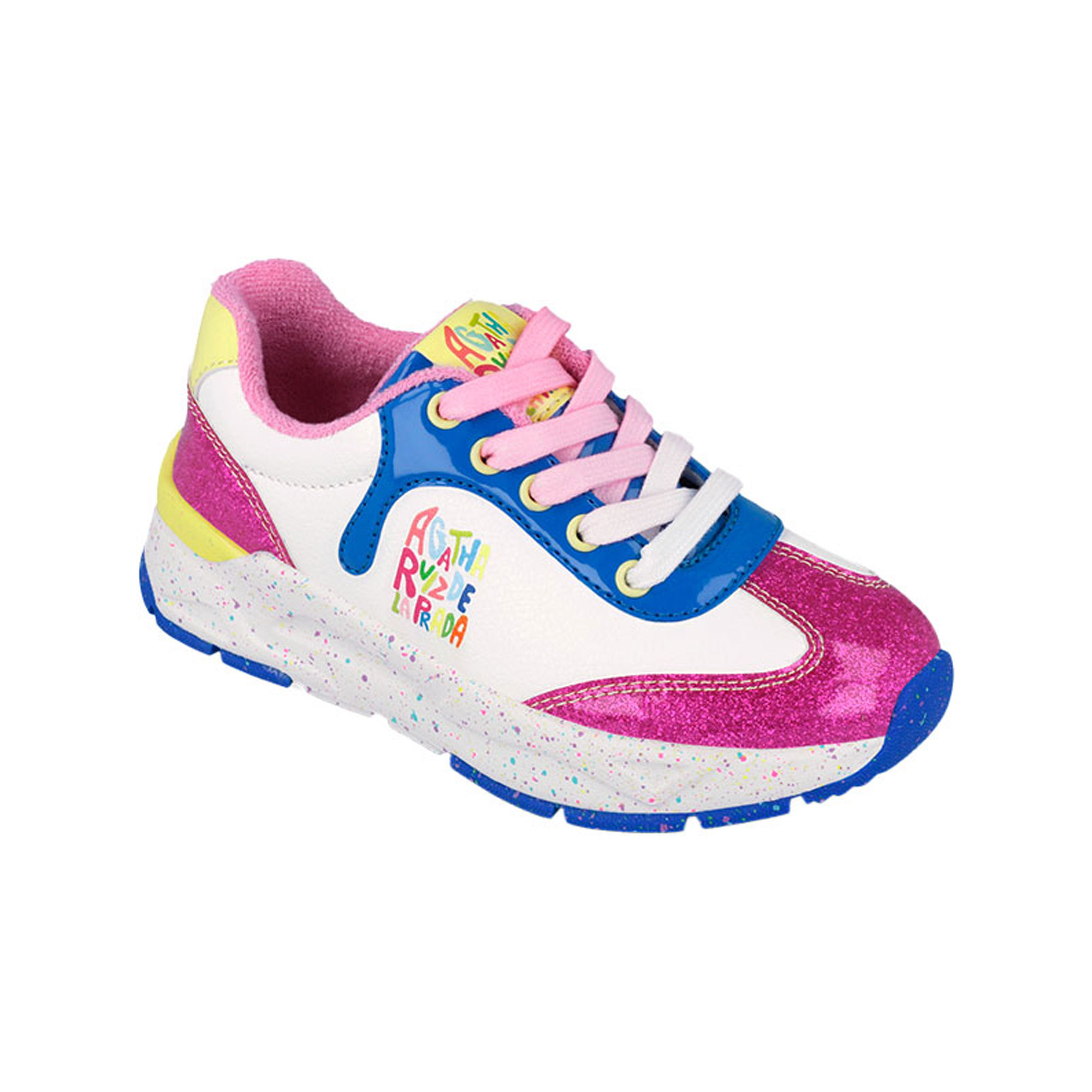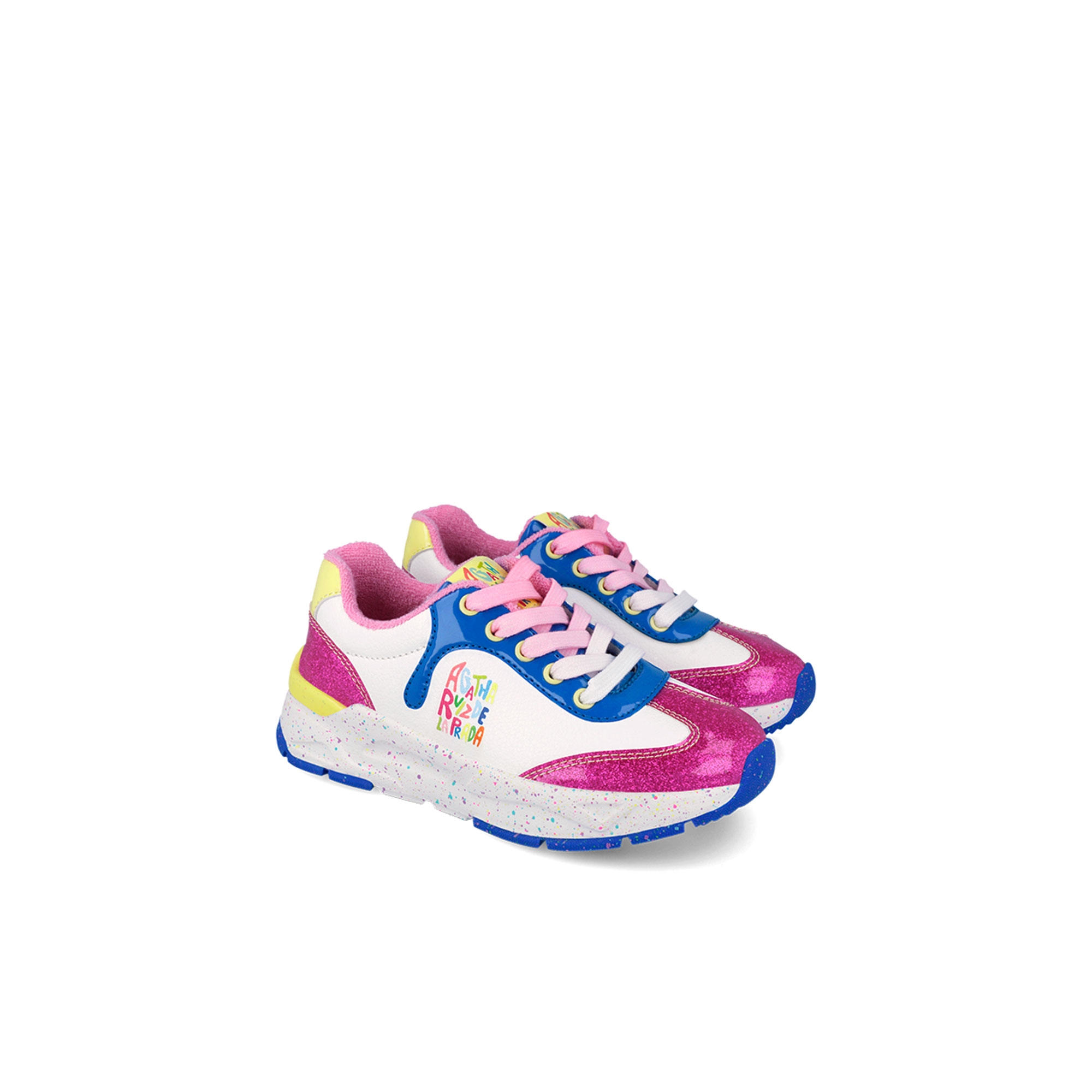 • Speckled midsole, brand logo details, lace-up fastening, glitter overlay details, round toe