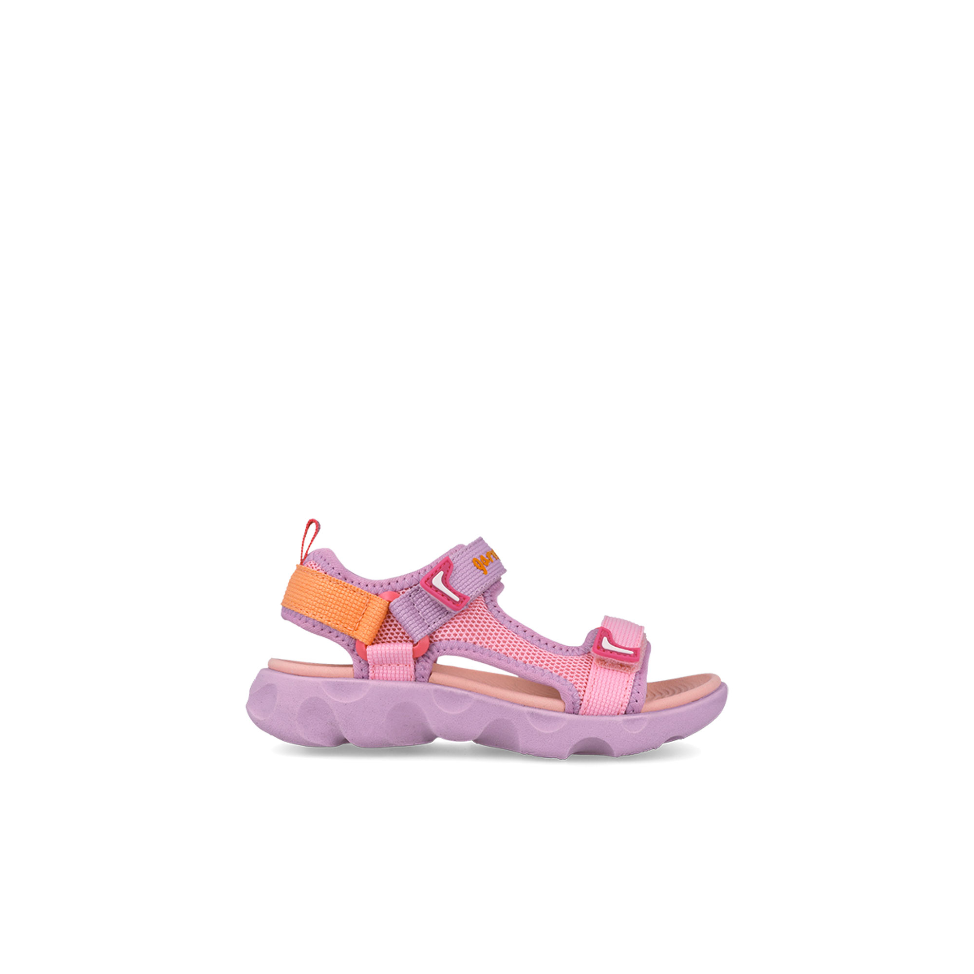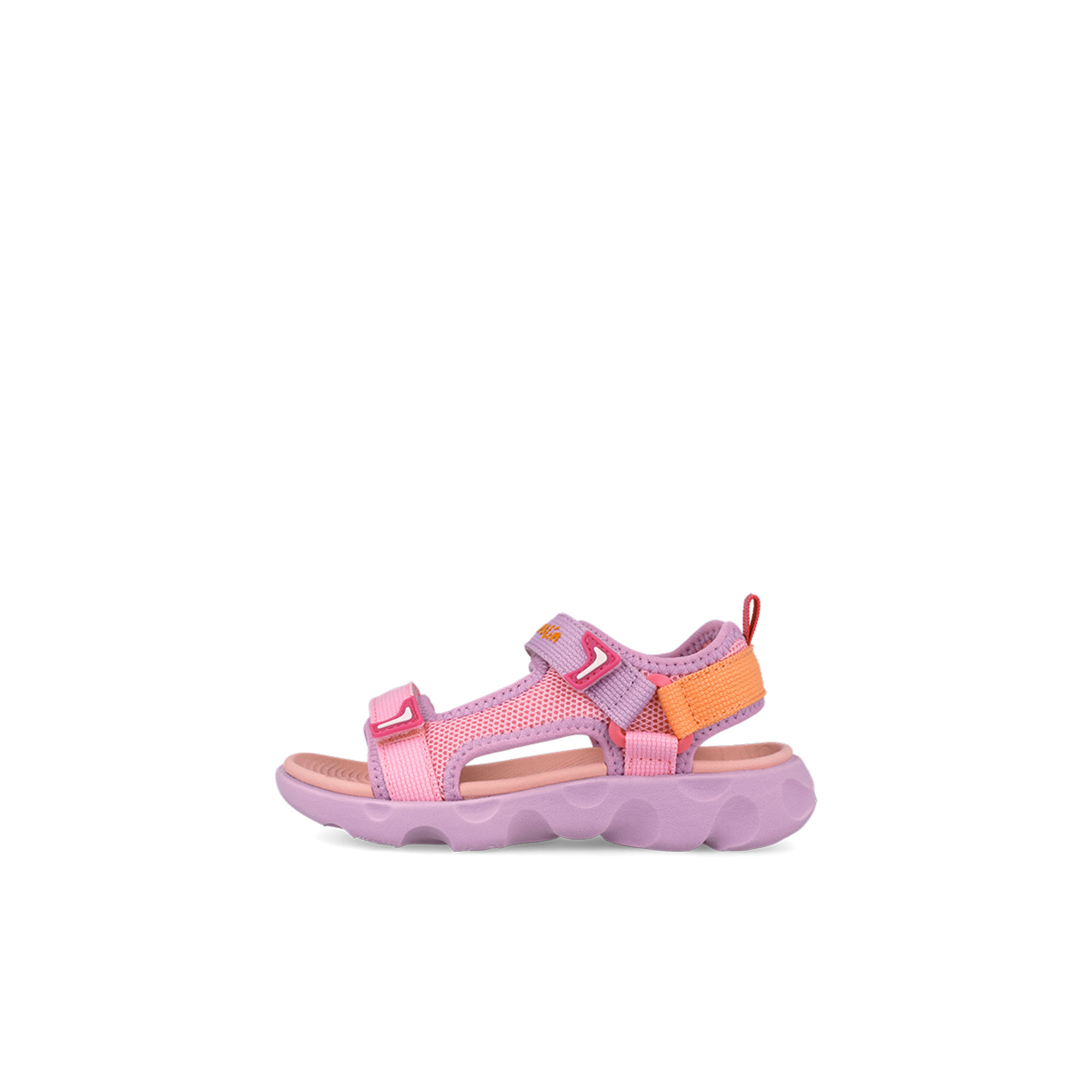 - Dual flat straps, brand logo details, rip tape fastenings, heel pull tab, round open toe