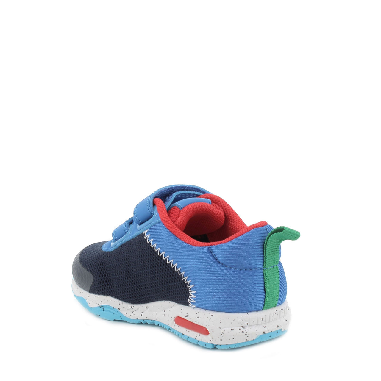 - Low top, dual straps, hook and loop fastening, contrast panelling, mesh texture details, brand logo detail, round toe, tonal and contrast stitching, thick sole, slip-on style, heel pull loop, dinosaur detail on side panel