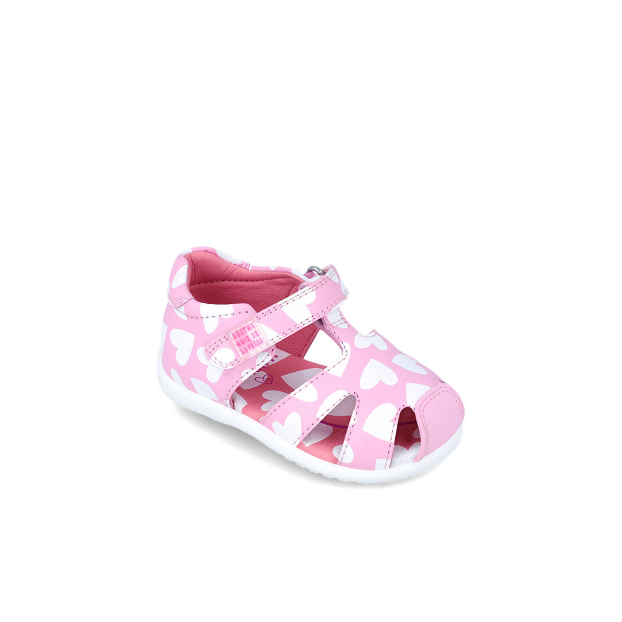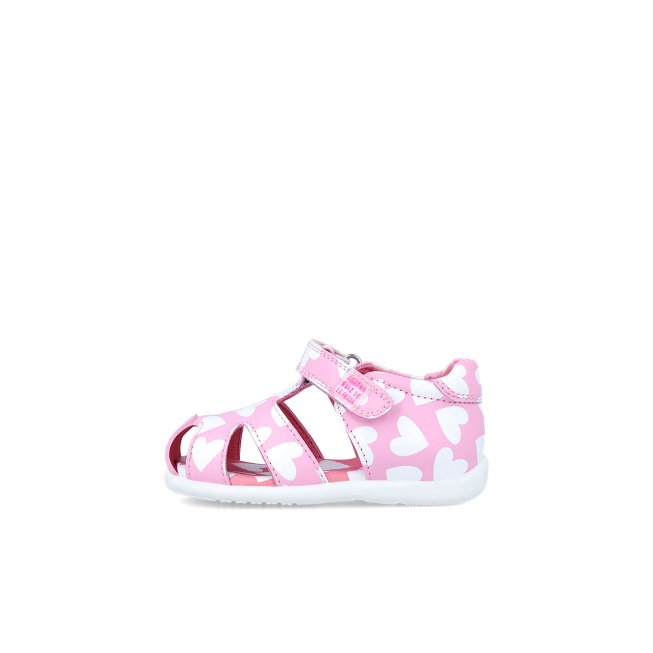 - Heart print, cut-out detailing, round toe, ankle strap with hook and loop fastening, brand logo detail
