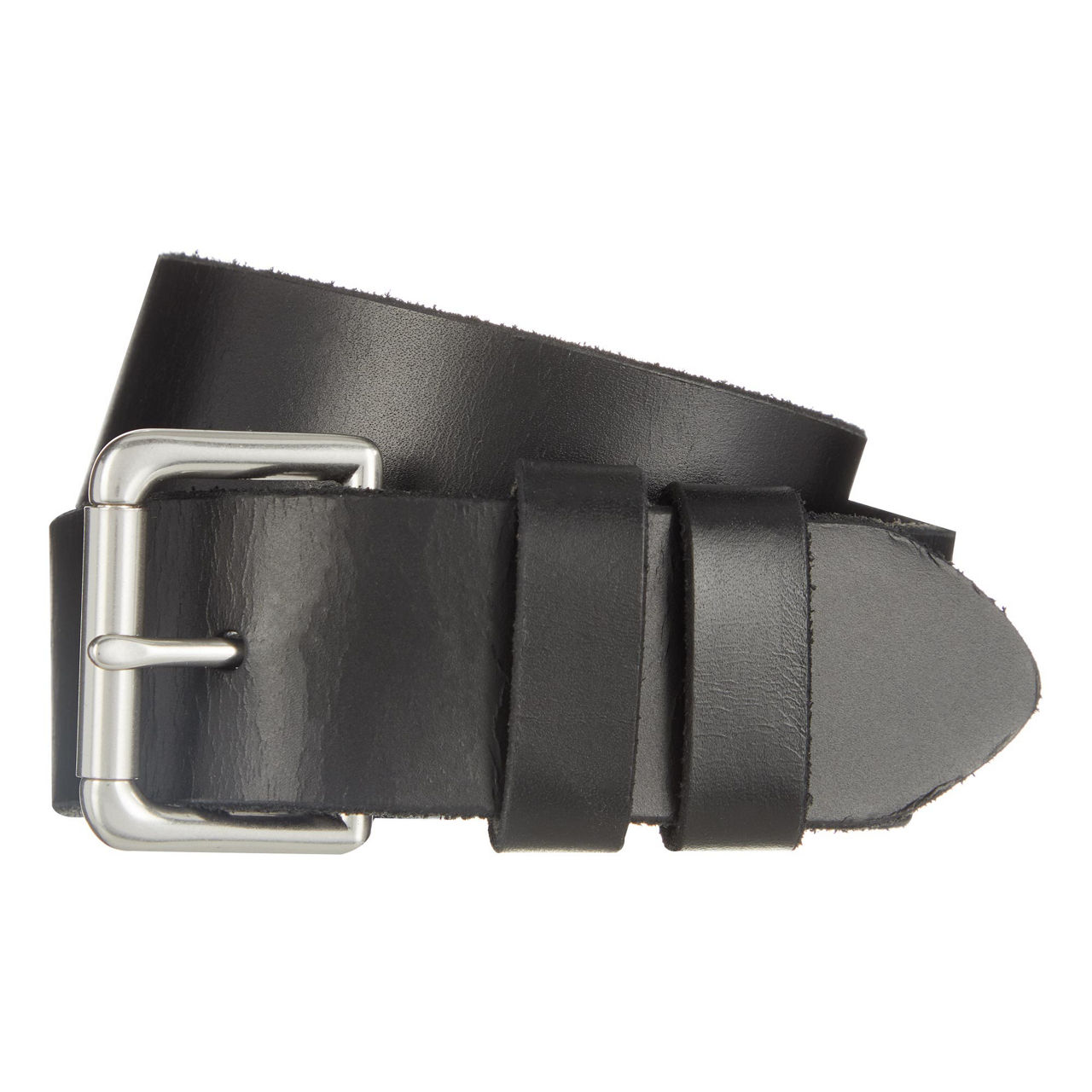 - Frayed leather, silver-tone hardware, buckle.